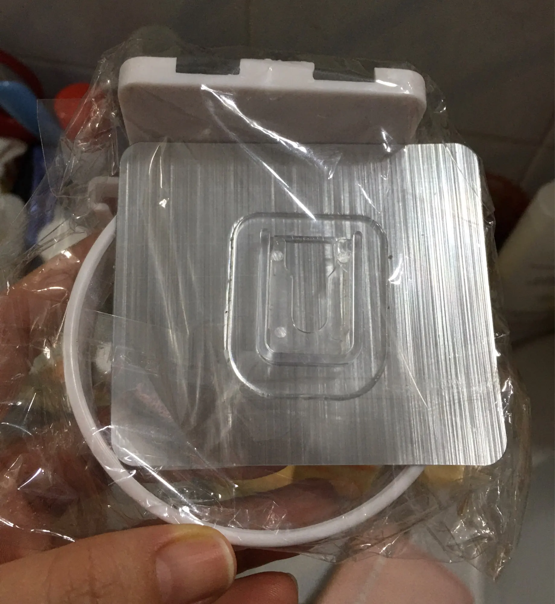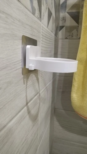 Пластинка, которая клеится к стене, пластиковая, не металлическая, как я думала, и пришла слегка помятой. В целом, держатель соответствует описанию и выглядит как на картинке.