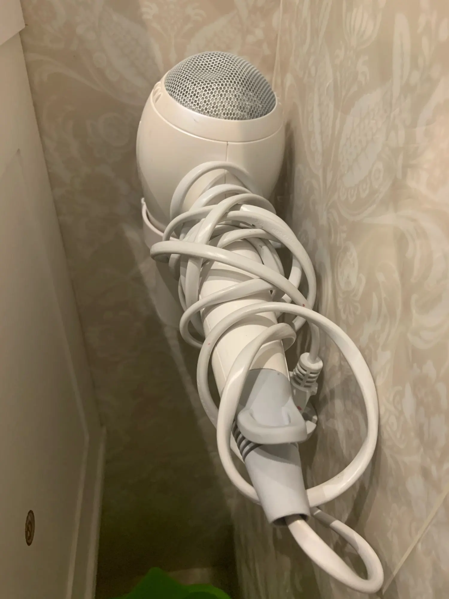 Очень хорошо, чтобы сэкономить место и не позволяйте фена растягиваться после его использования