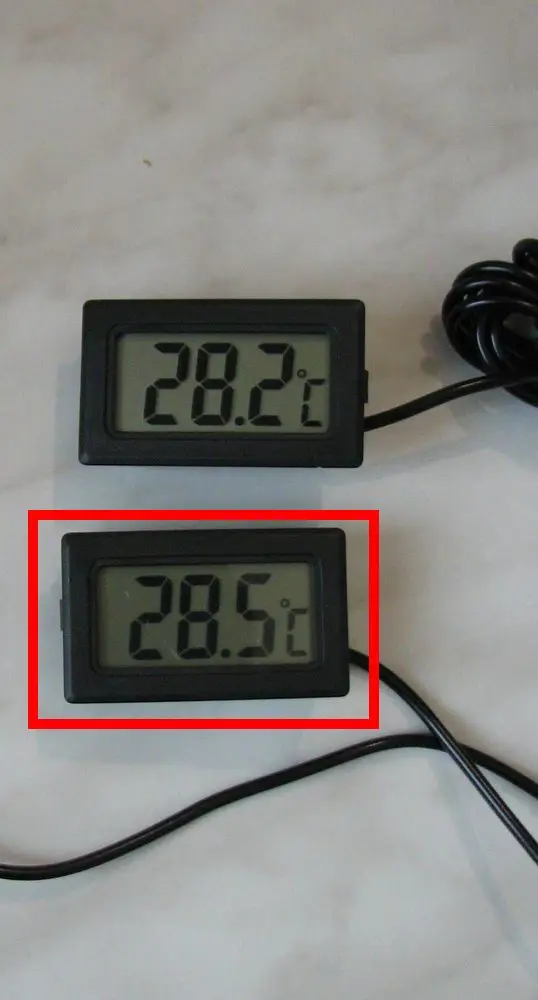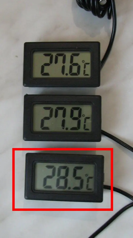 Заказывал 20 июня 6 штук по 40,99р(0,57$). Трек выдали 22-го. Трек бился (AliExpress Standard) с 24-го на всем пути. Посылка была консолидирована с другими. Получил в Омской области 08.07 (18 дней). Упаковка: пластиковый зип-пакет (для каждого термометра) + несколько слоев вспененного полиэтилена + пластиковый сейф-пакет для почтовых отправлений со слоем из воздушно-пузырчатой пленки. Всё дошло в целости. Батареек, как и указано продавцом, в комплекте не было. Так как батареек в должном количестве не имелось, то на фото красным обведен термометр который не менялся (чтобы было с чем сравнивать). Длина провода на термометрах в диапазоне от 194 см до 202 см.