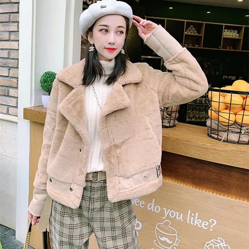 Женская куртка из овчины MUMUZI, короткая утепленная куртка с бархатными лацканами, в Корейском стиле, теплая парка, 2019