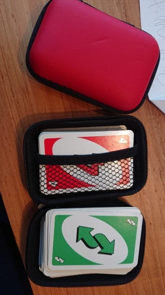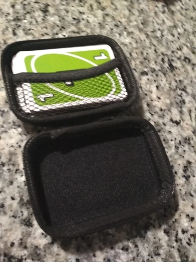 Самый обычный кейс. Молния хлипкая, но работает. Колода уно вместилась. Планирую заказать еще. Это намного удобнее картонок. Шел очень долго.