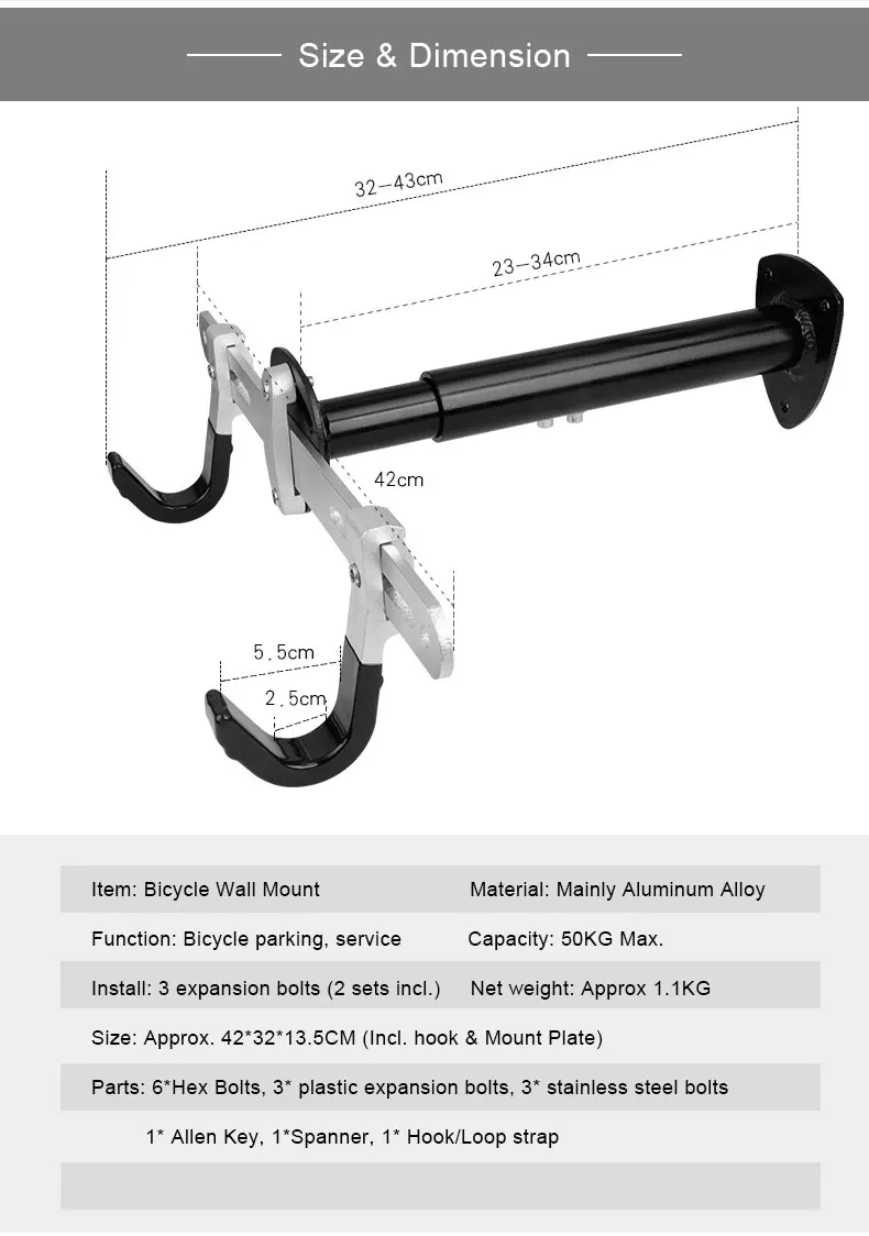Квасцы без ржавчины, емкость 50 кг Подставка для крепления велосипеда из сплава, многофункциональная регулировка с 2 комплектами качественных винтов