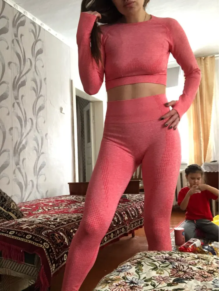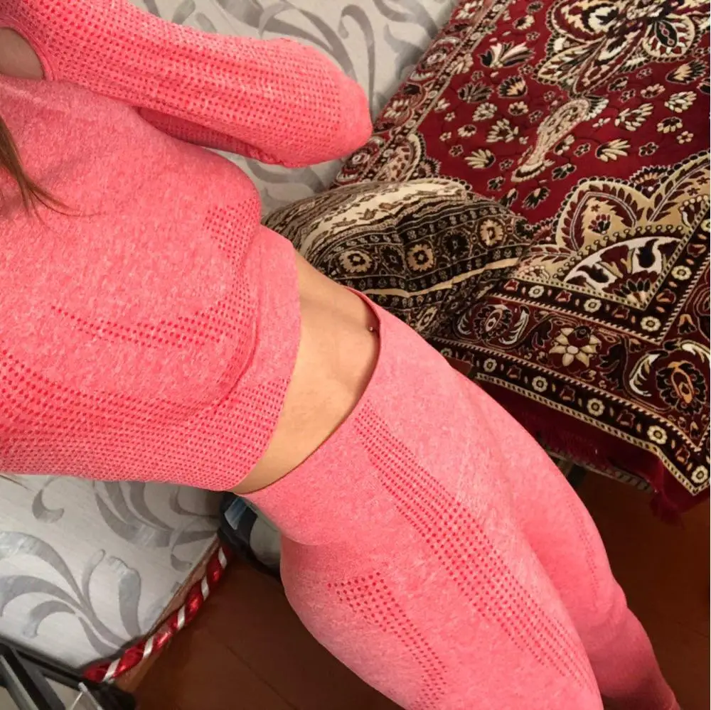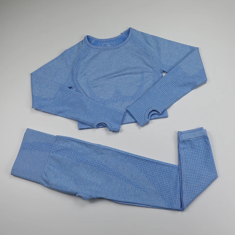 Комплект для йоги с длинным рукавом женская спортивная одежда жизненный бесшовный укороченный топ + леггинсы для фитнеса спортивный костюм Женская одежда для бега и тренировок