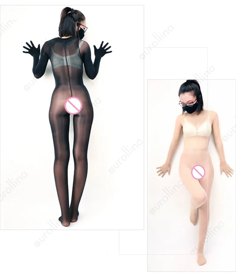 Бондаж колготки Боди Чулки Фетиш масло тонкие колготки супер блестящий комбинезон Колготки Фэнтези закрытая промежность масляные интегрированные перчатки