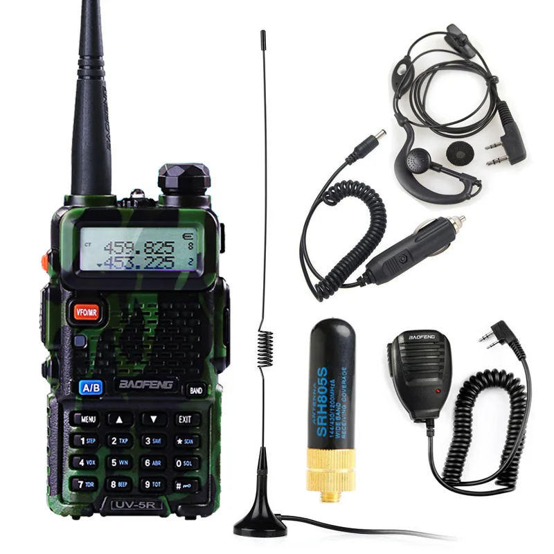 UV-5R в пяти цветах: черный, камуфляж, желтый, красный, синий.