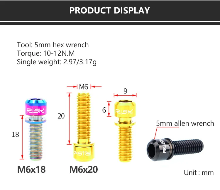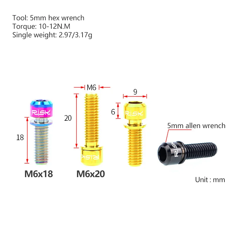 Крепежные болты из титанового сплава дисковый тормоз горного велосипеда, 4 шт., m6x18 мм, M6X20 мм, шурупы с шайбой для горного велосипеда