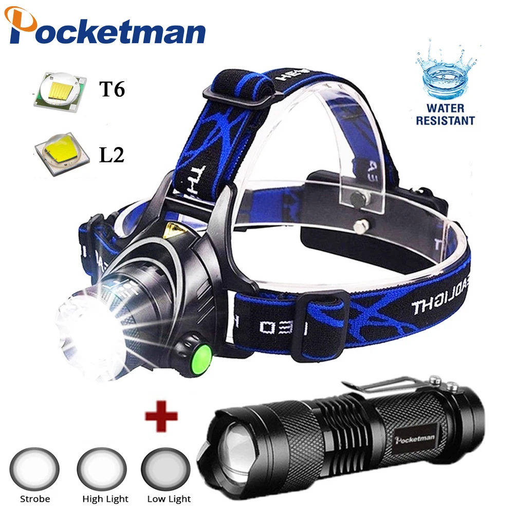 8000lum яркий Перезаряжаемый налобный фонарь USB T6/L2 Zoom водонепроницаемый фонарь для кемпинга Z30