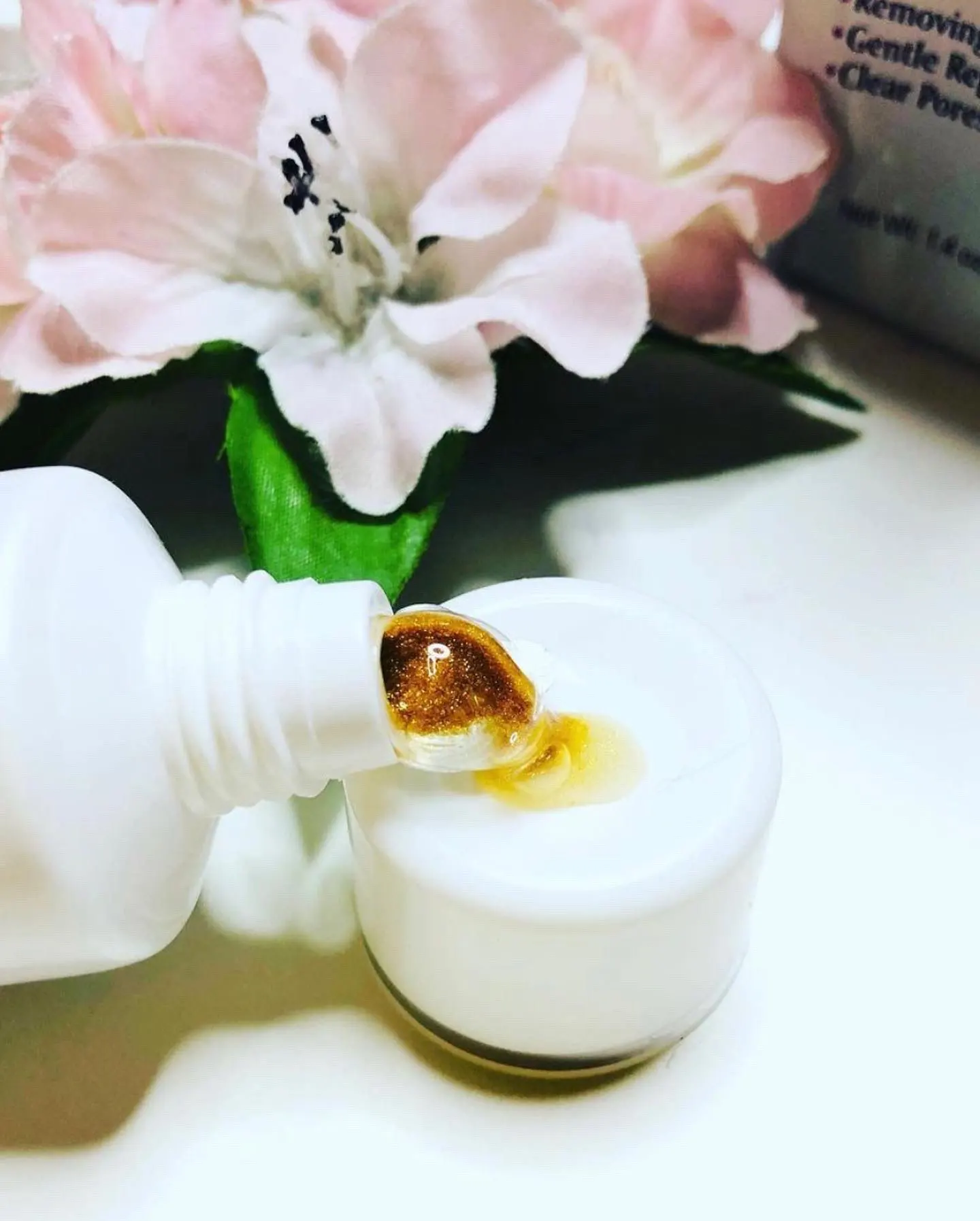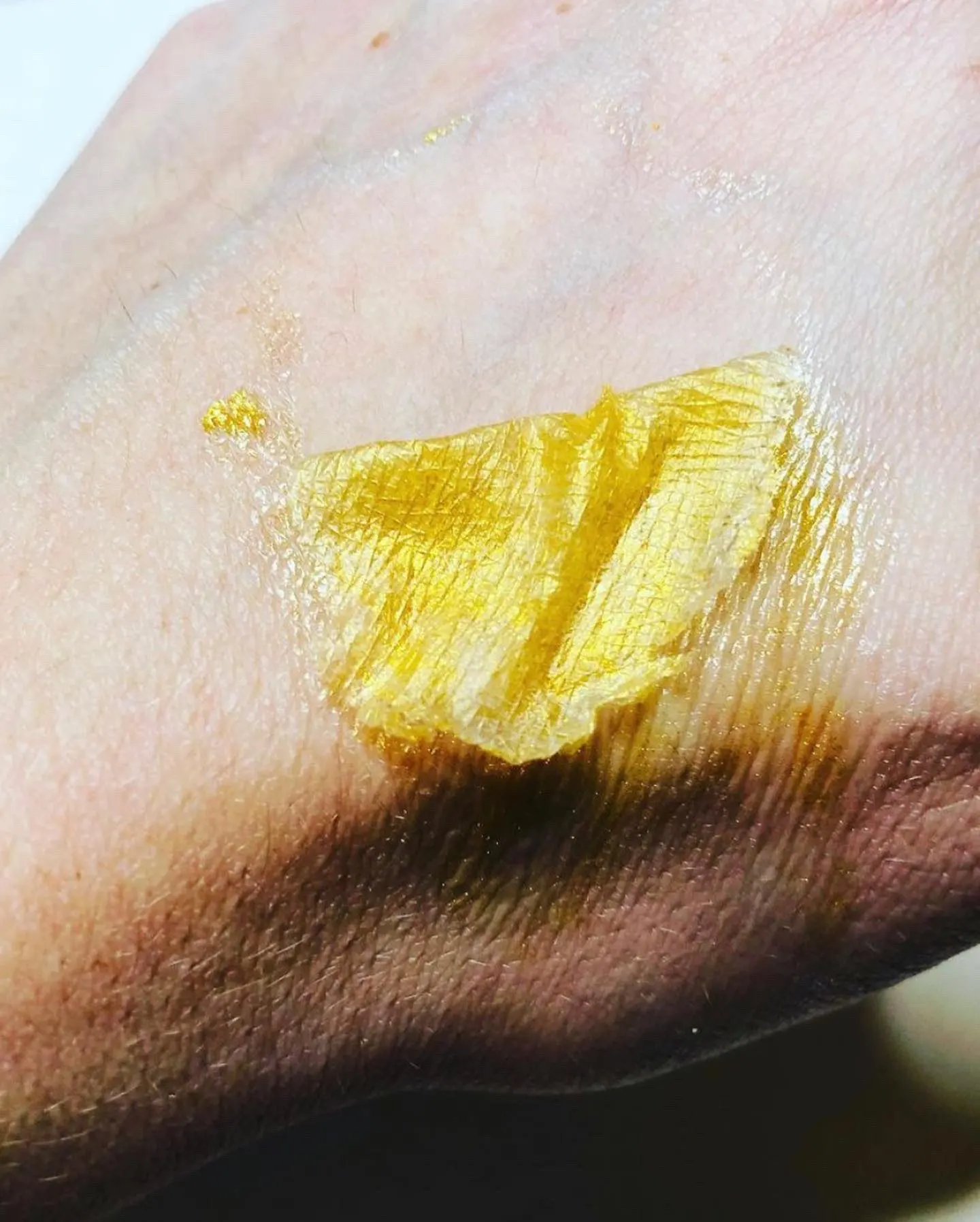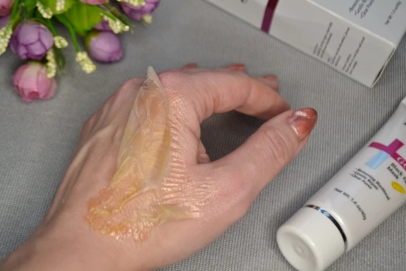 Очищающая золотая маска-пленка, тягучая и вязкая. После её использования кожа становится гладкой и очищенной от грязи, мёртвых клеток эпителия и остатков косметики. Также маска подойдёт тем, у кого есть проблемы с кожей, прыщики и чёрные точки. Застывает минут за 15 .