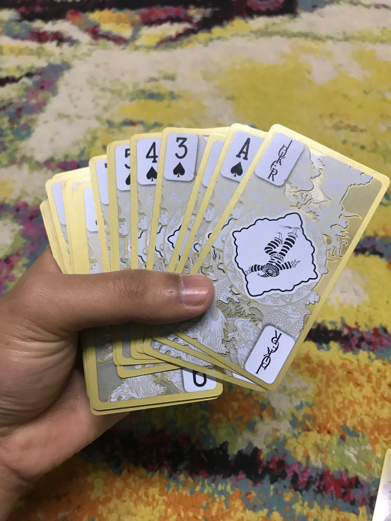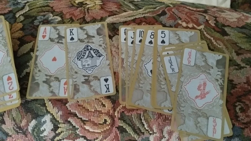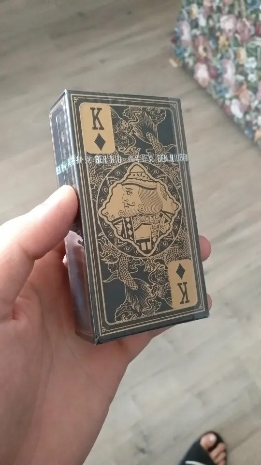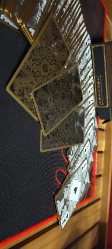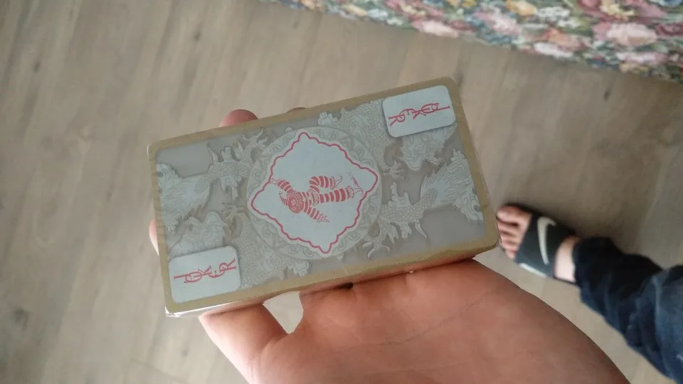 Оригинальный дизайн карт. Обрез у колоды черный. Довольно сильно пахнут пластиком, надеюсь, выветрится со временем.
