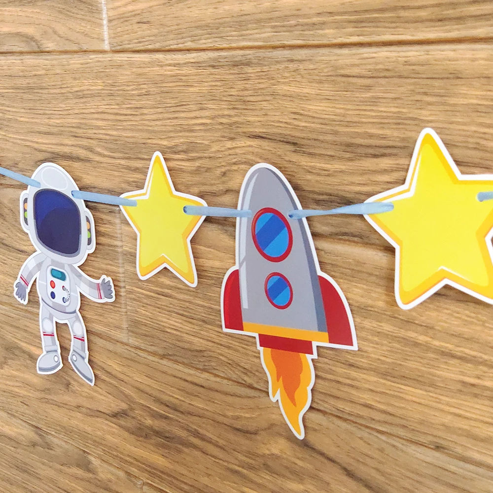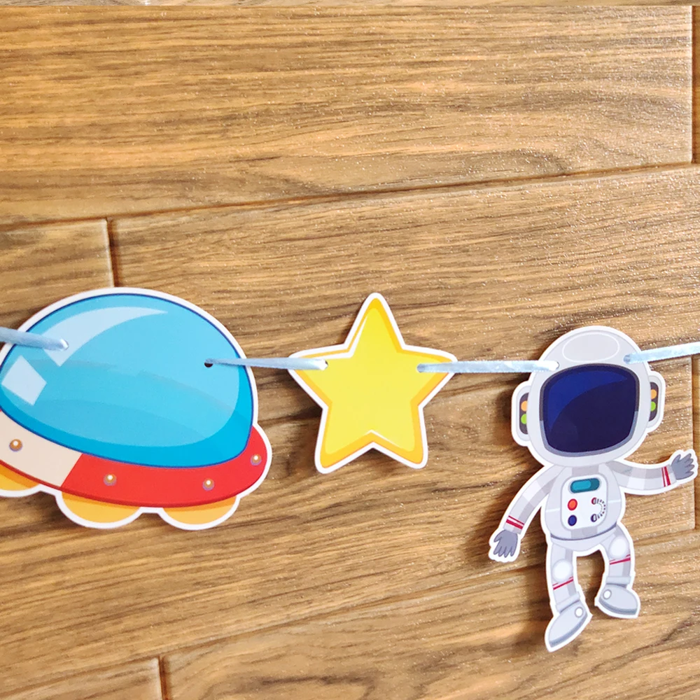 Космический корабль, строительный баннер, гирлянда, астронавт на солнечной батарее, DIY, флажки для детей, мальчиков, девочек, космос, товары для дня рождения, подвесное украшение
