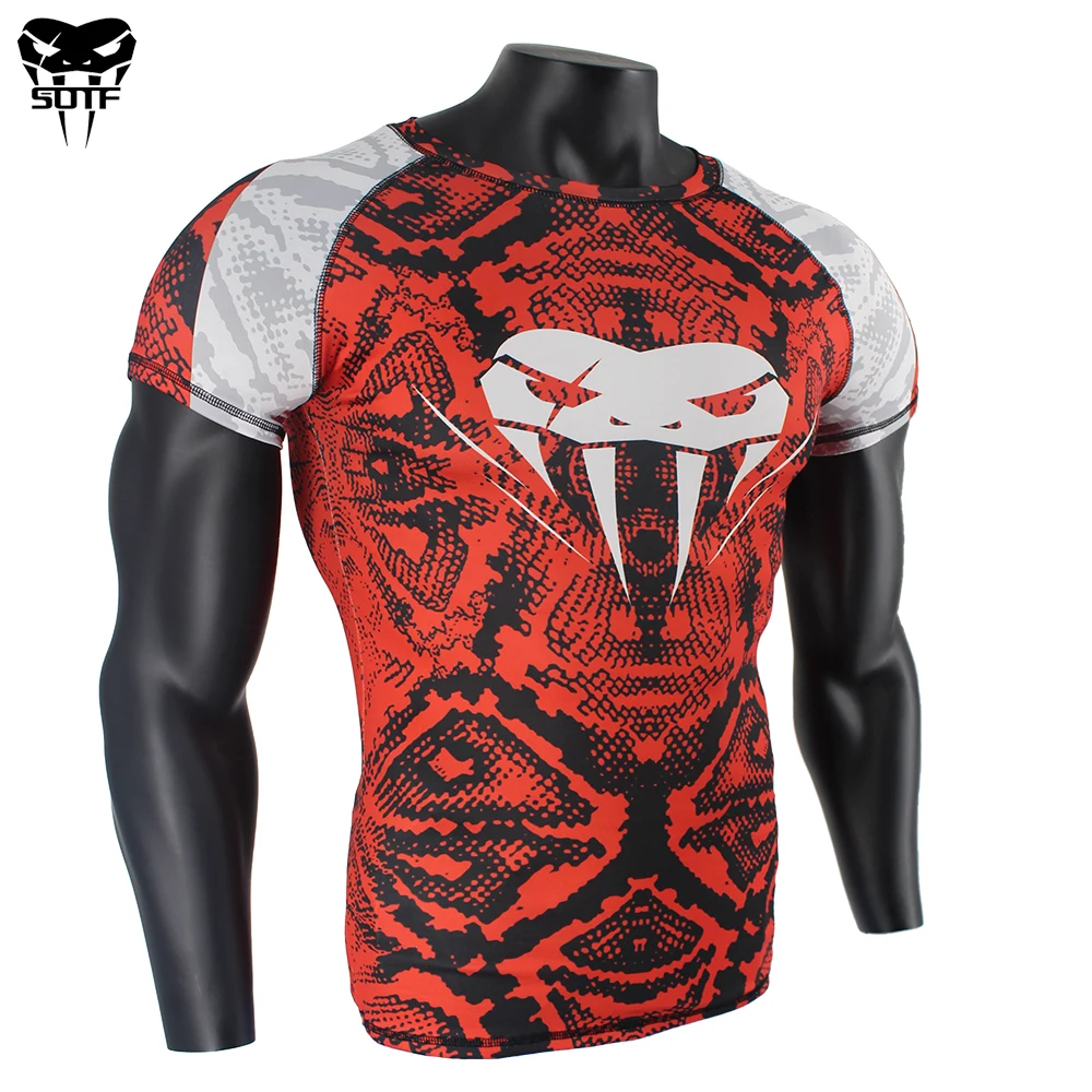 SOTF Змея Весы короткий рукав фитнес ММА Боксерские трикотажные изделия Тигр Муай Тай Рашгард джиу джитсу король боксерская футболка ММА компрессия