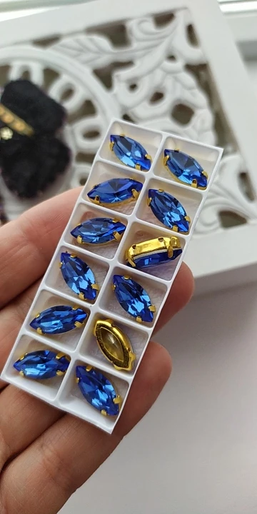 Страна: BY Color: Sapphire Size: 7x15mm 12pcs Number of Pcs: with gold setting Доставка: Seller's Shipping Method 16.01.2021