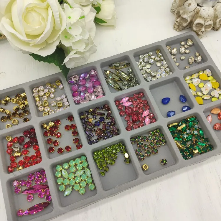 Стразы с кристаллами разных цветов и размеров с настройками или без них