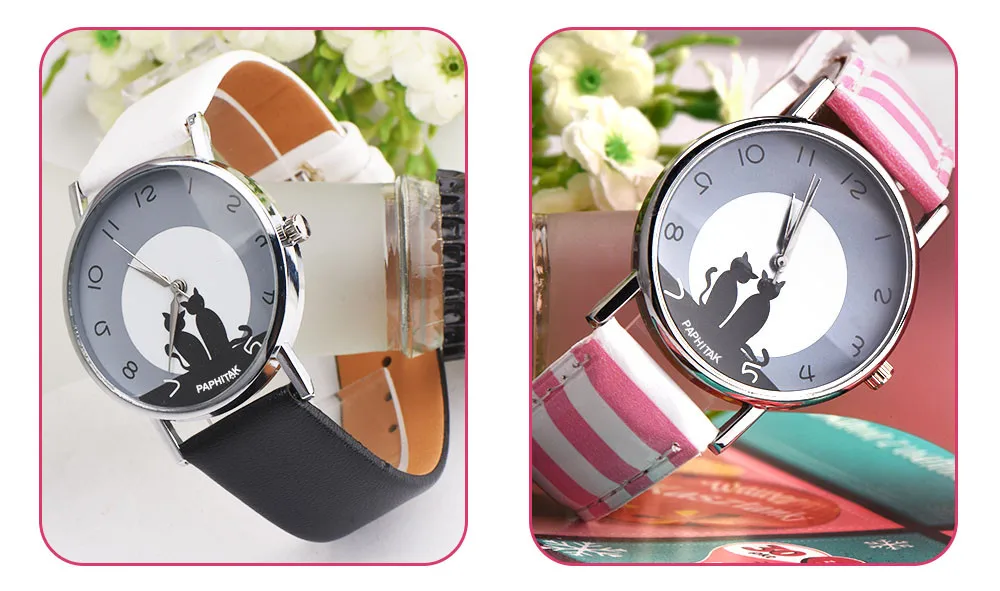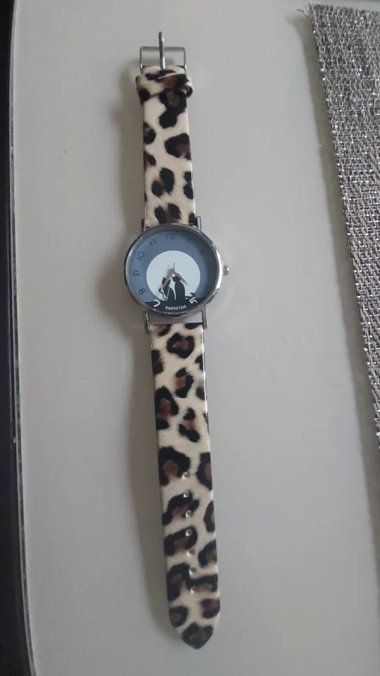 Женские Аналоговые кварцевые часы с леопардовым принтом и изображением кошки
