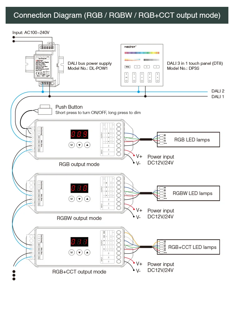 Название продукта: Сенсорная панель DALI 3 в 1 (DT8)