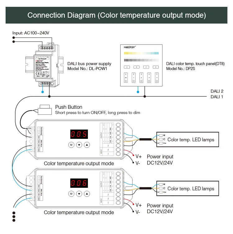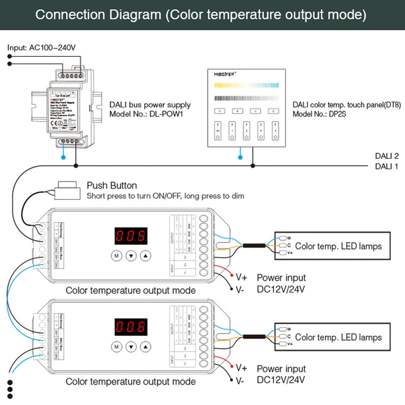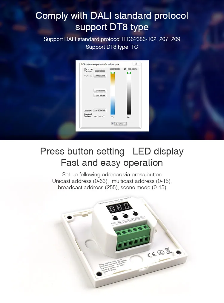 Название продукта: Сенсорная панель с цветовой температурой DALI (DT8)