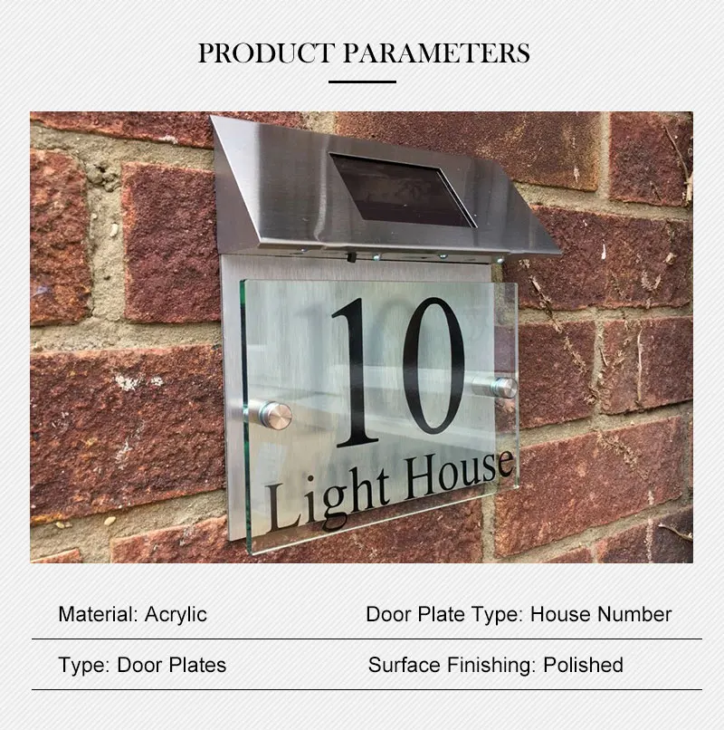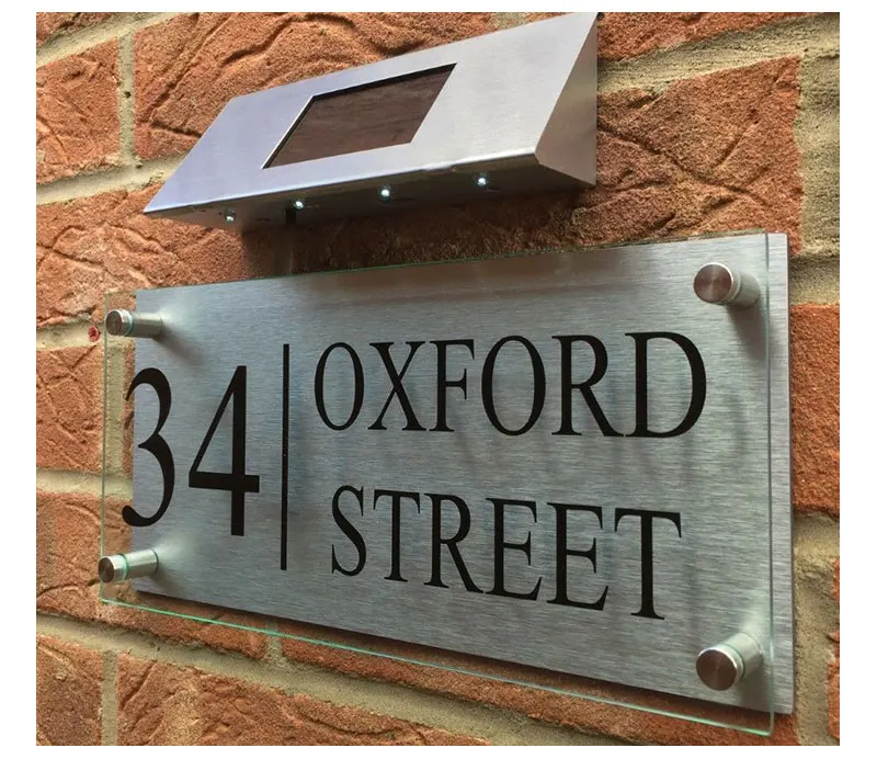 Подгоняемый современный знак на дом, табличка, номер двери, уличное стекло, алюминиевый эффект, светодиодный солнечный номер, наклейки, адресный номер для дома