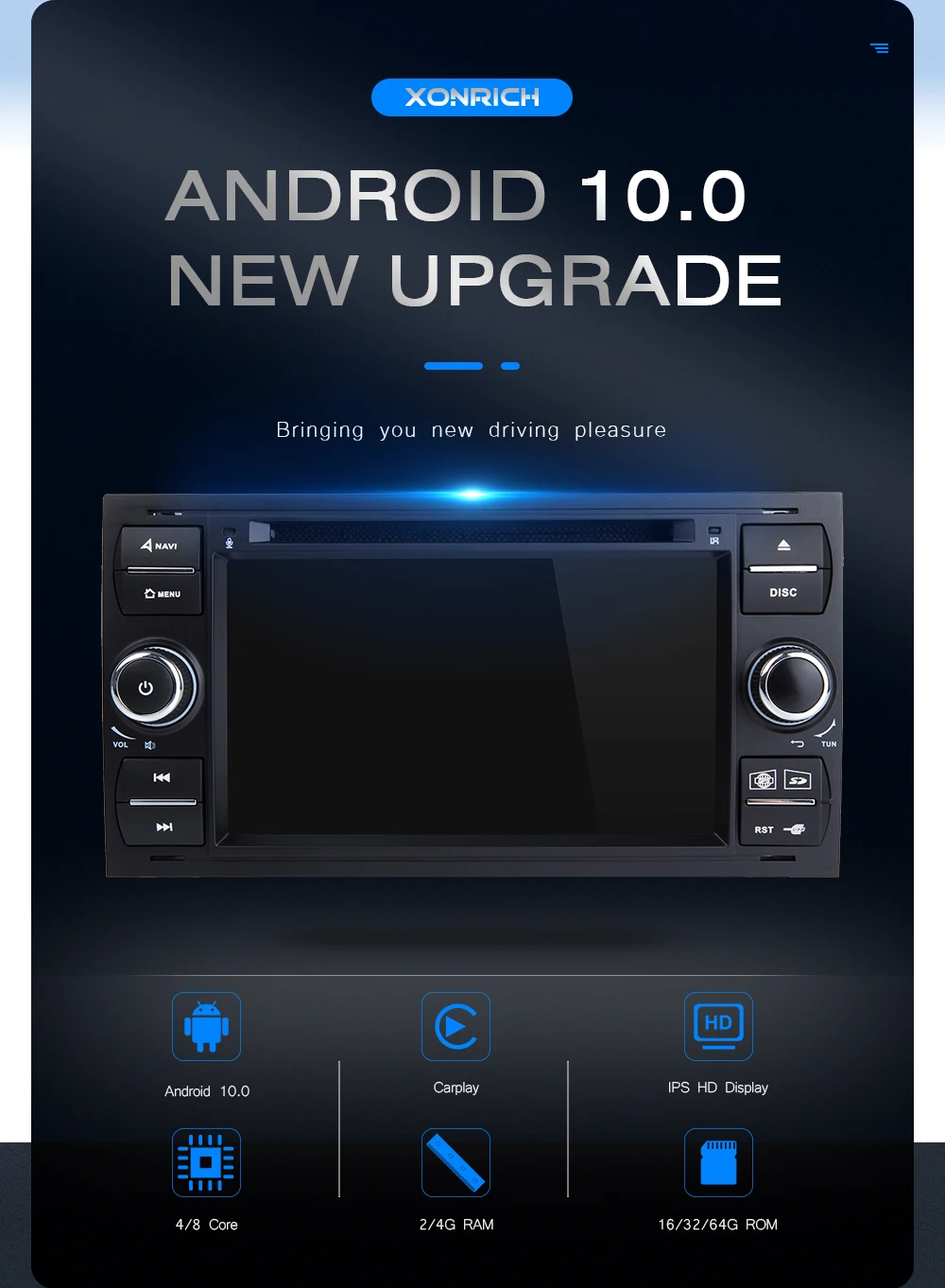 Автомобильный мультимедийный плеер 2DIN, Android 10, для Ford Focus 2, 3, Transit Connect S-MAX, C-MAXKuga, Mondeo 4, Fusion, Galaxy, Радио Навигация