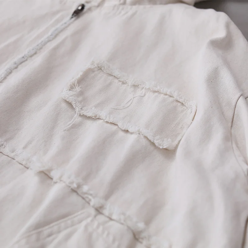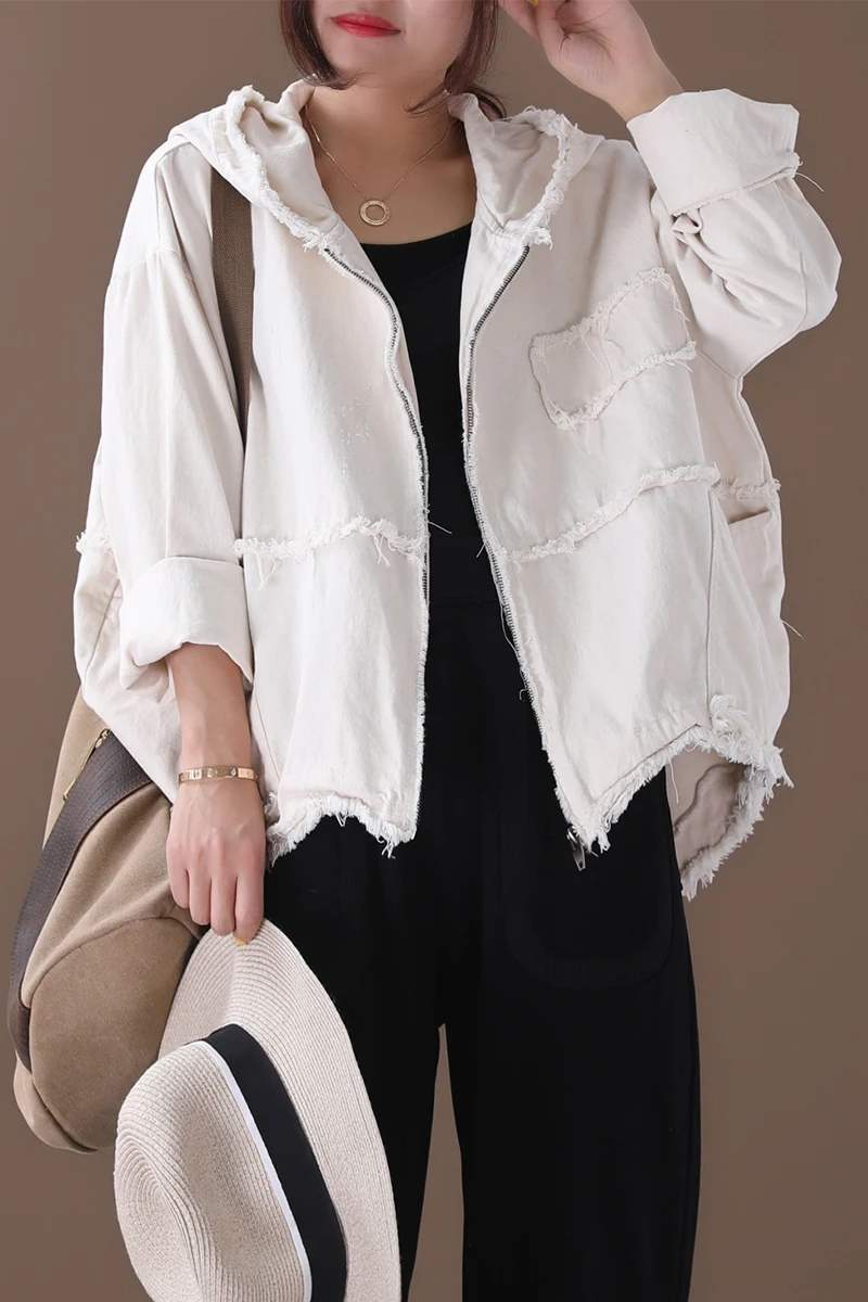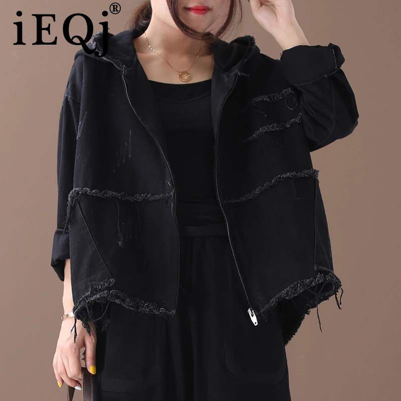 IEQJ 2022 Весенняя новая модель Офисная Женская стильная свободная однотонная винтажная Потертая джинсовая куртка с капюшоном и длинным рукавом AF638