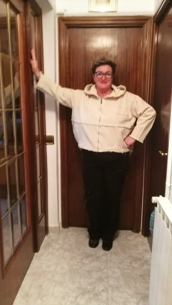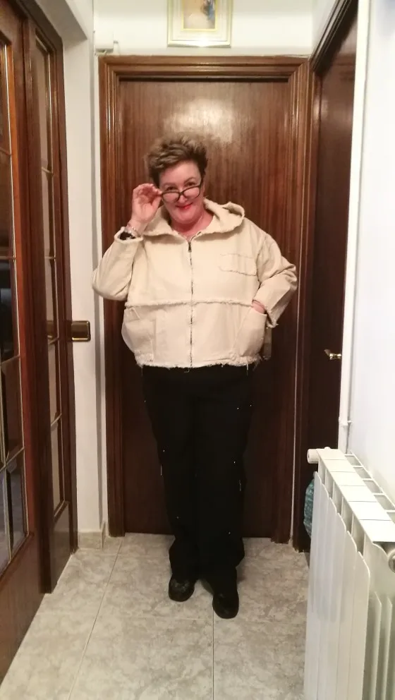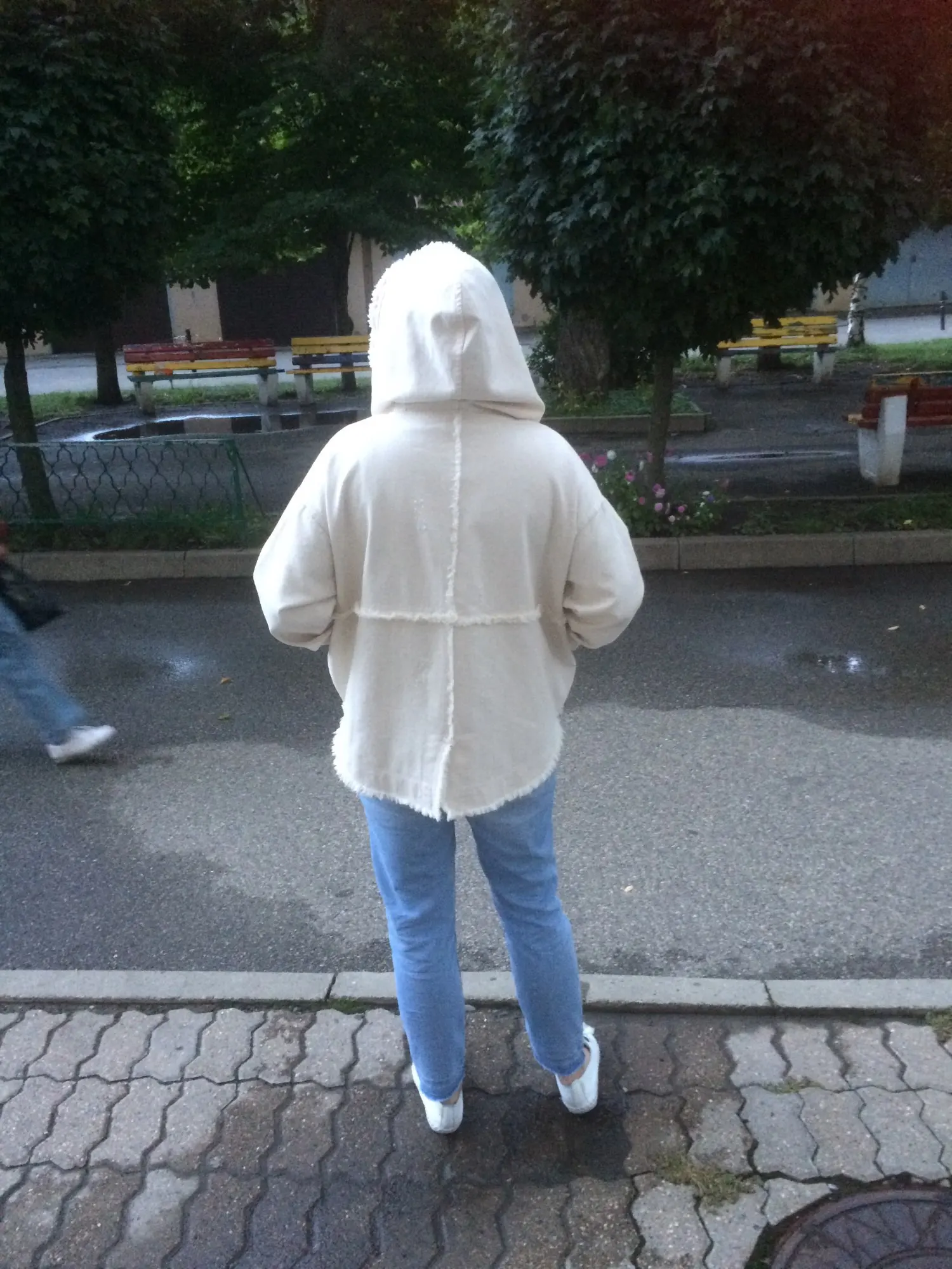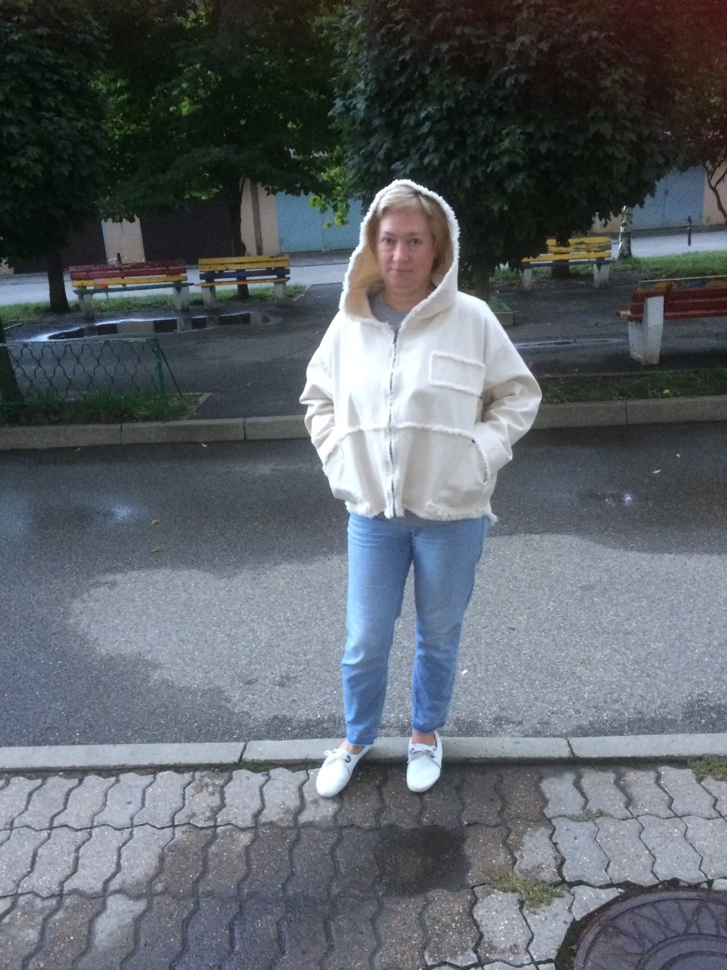 Классная. Идёт на размер 50-52, рост не более 165 см, иначе будет короткие рукава. У меня размер 50, 102/85/102, рост 162, смотрится оверсайз. Цвет желтовалый небеленый хлопок, достаточно тяжёлая как и должна быть джинсовая куртка. Махринки пришлось подрезать, так как были обрезаны не аккуратно. Доставка быстрая.