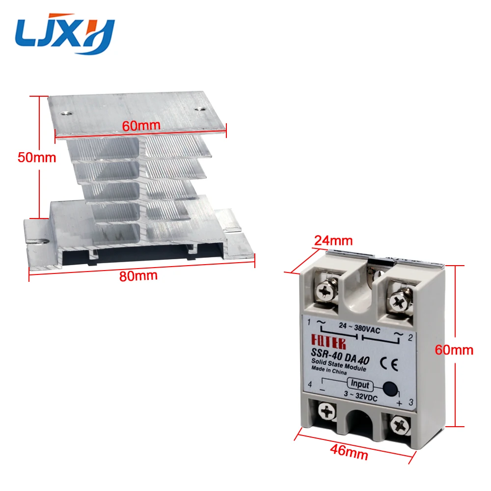 LJXH алюминиевый радиатор и твердотельные реле SSR-10DA 25DA 40DA 75DA 100DA 3-32VDC вход/24-380vac выход