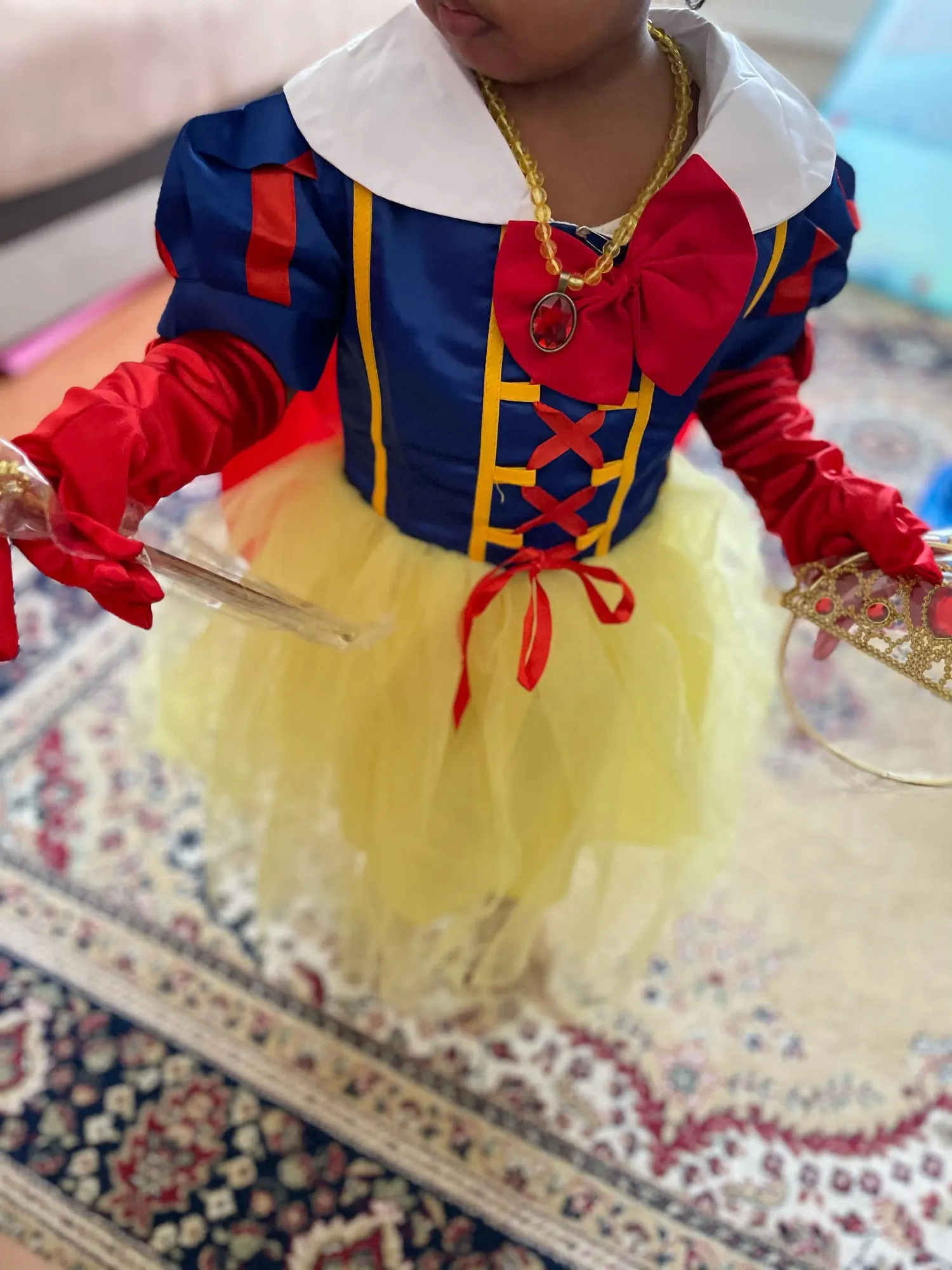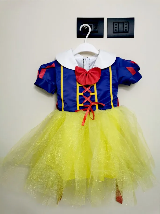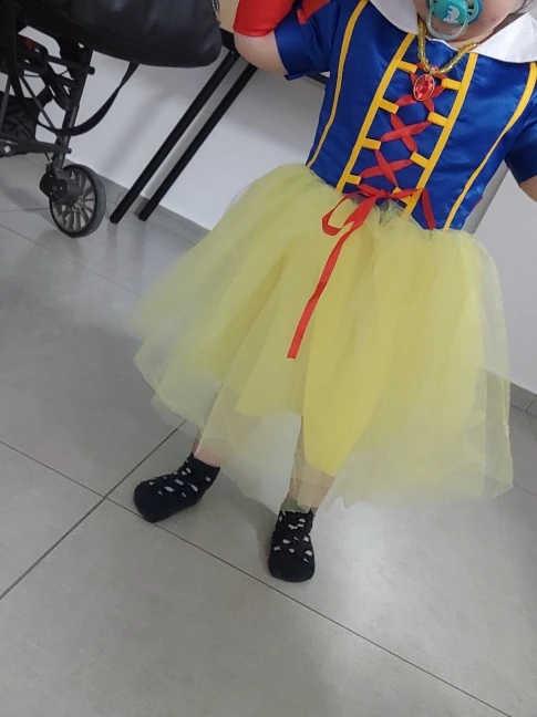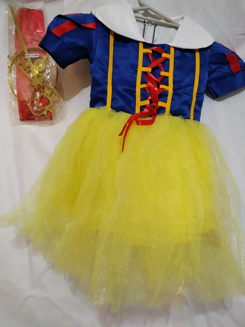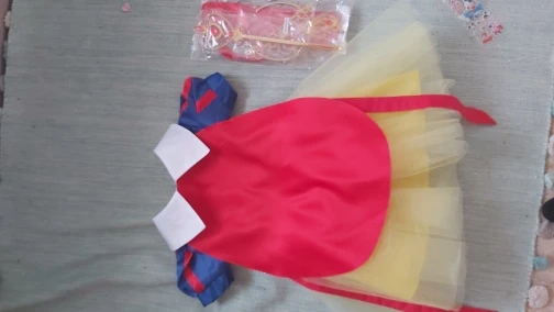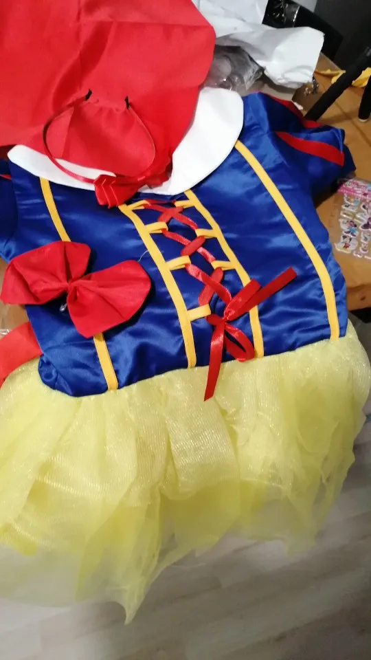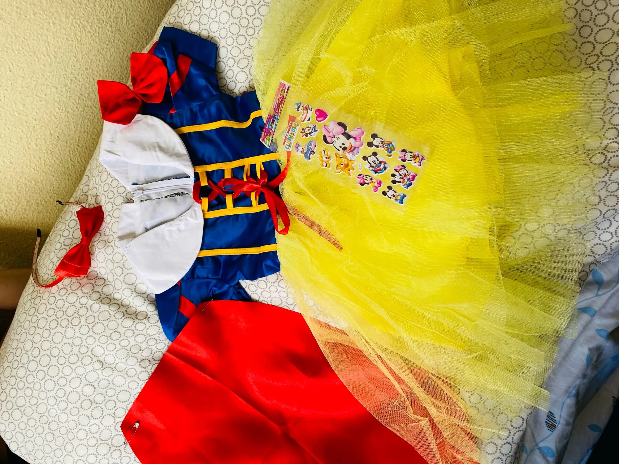Красивое платье, хорошее качество и подкладка. Единственное, что слой-это кусок Обрезной ткани и на крючке с двумя заколками, но я сшил две красные ленты, и он выглядит отлично. И аксессуары тоже хороши. К тому же он поставляется с подарочными наклейками Микки. Большое вам спасибо