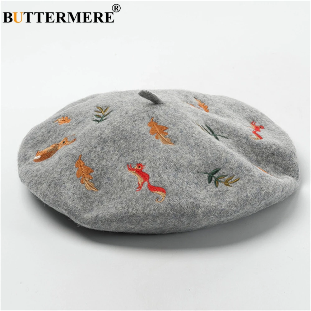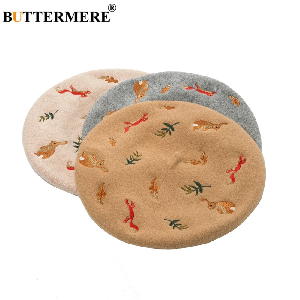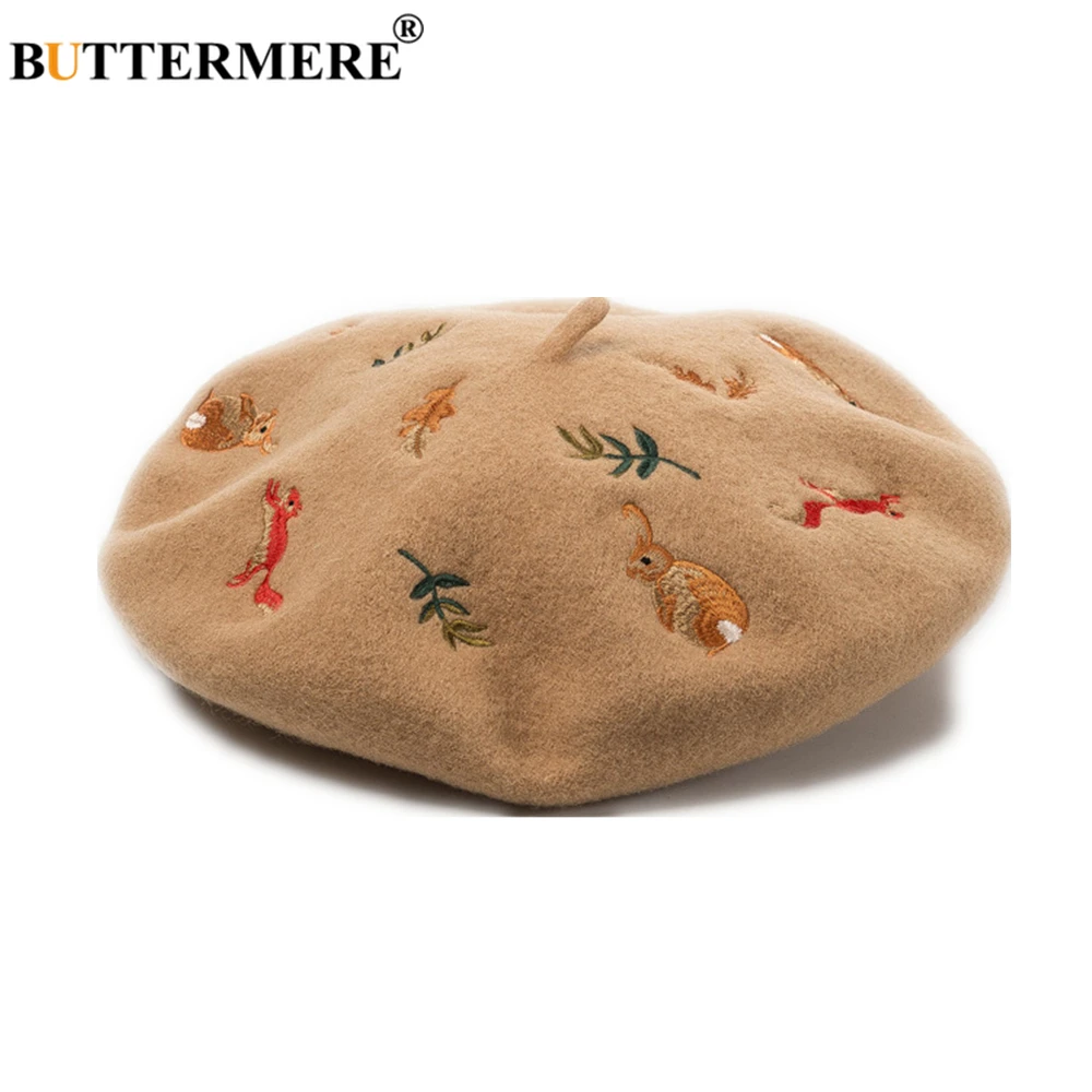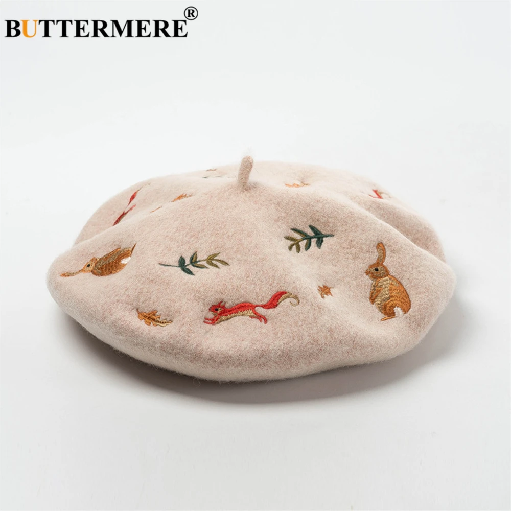 Женский шерстяной берет BUTTERMERE, винтажная шапка грибовидной формы с вышивкой в виде листьев белка, розовый или верблюжьего кролика, для зимы