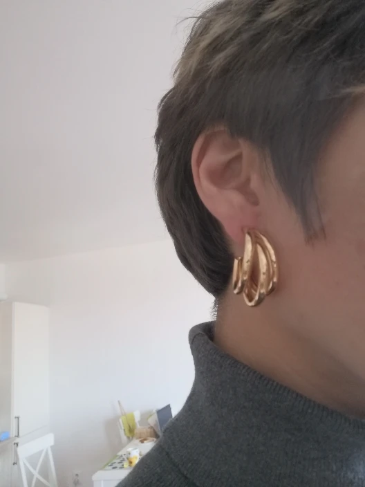 Товар не соответствует описанию. Серьги очень большие. На фото они выглядят не так.