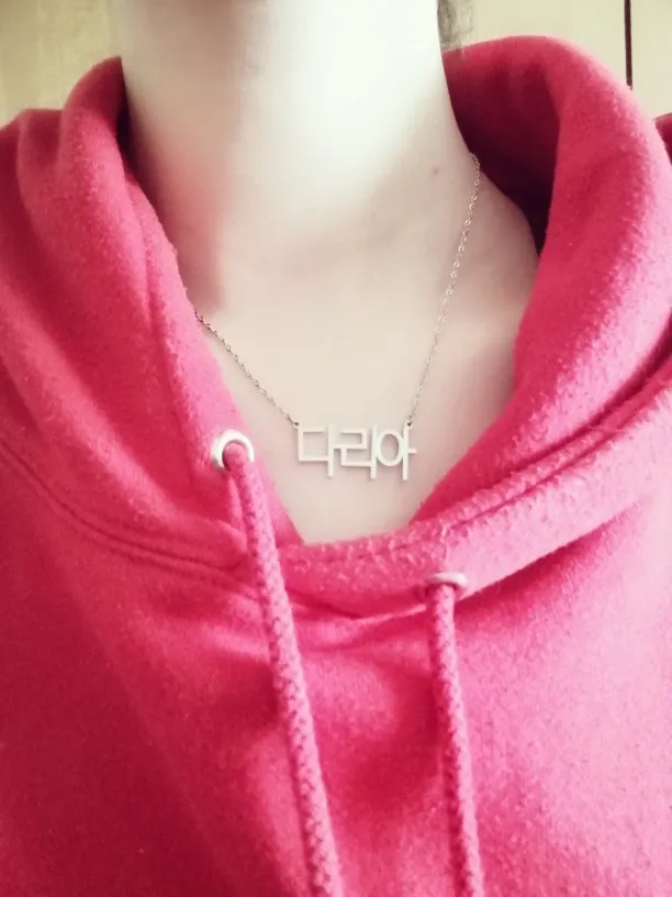 Ожерелье наконец прибыло! Это так, как ожидалось, и я в восторге от этого! Цепочка тонкая и очень девчачья, ее можно отрегулировать. Надпись-то, что я хотел, большое спасибо!