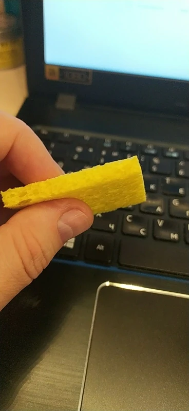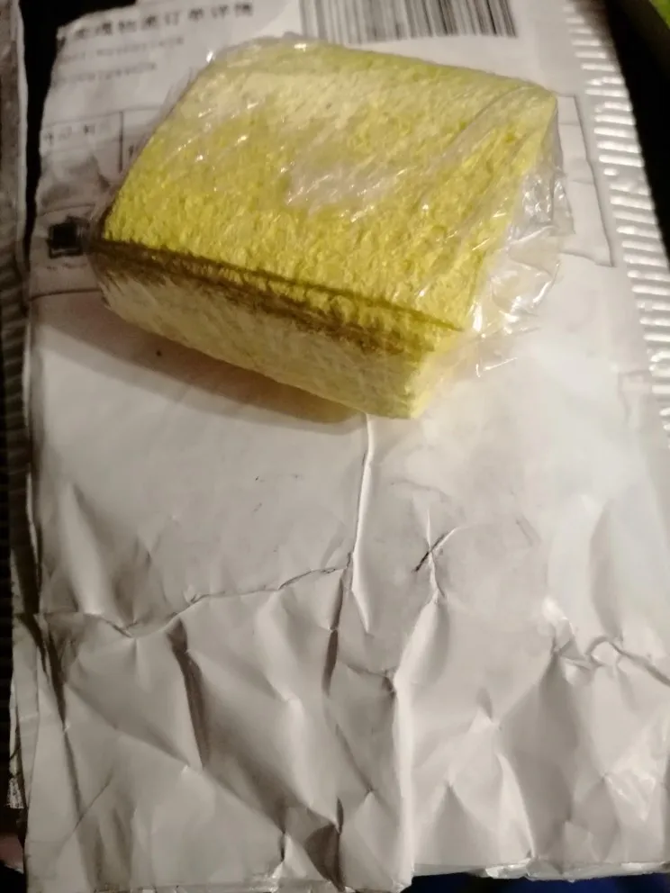 Губка как губка, желтая квадратная. Прошла консолидацию с другим отправлением, из-за этого не так долго шла.