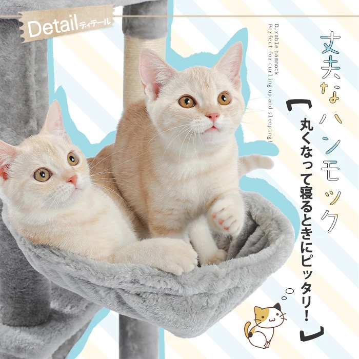 ·Домик для кошек в помещении: первый домик на дереве для кошек создан для лечения расстройства кошек, поэтому в нем выросли многоуровневые кошачьи деревья и башни, которые позволяют вашим кошкам играть, отдыхать, упражнения дома. Лестница добавляет больше уровней для лазания, а кровать-гамак-качели под большими платформами-лучшее место для котят. Многочисленные когтеточки либо покрыты сизалевой веревкой, либо промывочная ткань удовлетворит кошачий характер заточки когтей с различными ощущениями царапания
