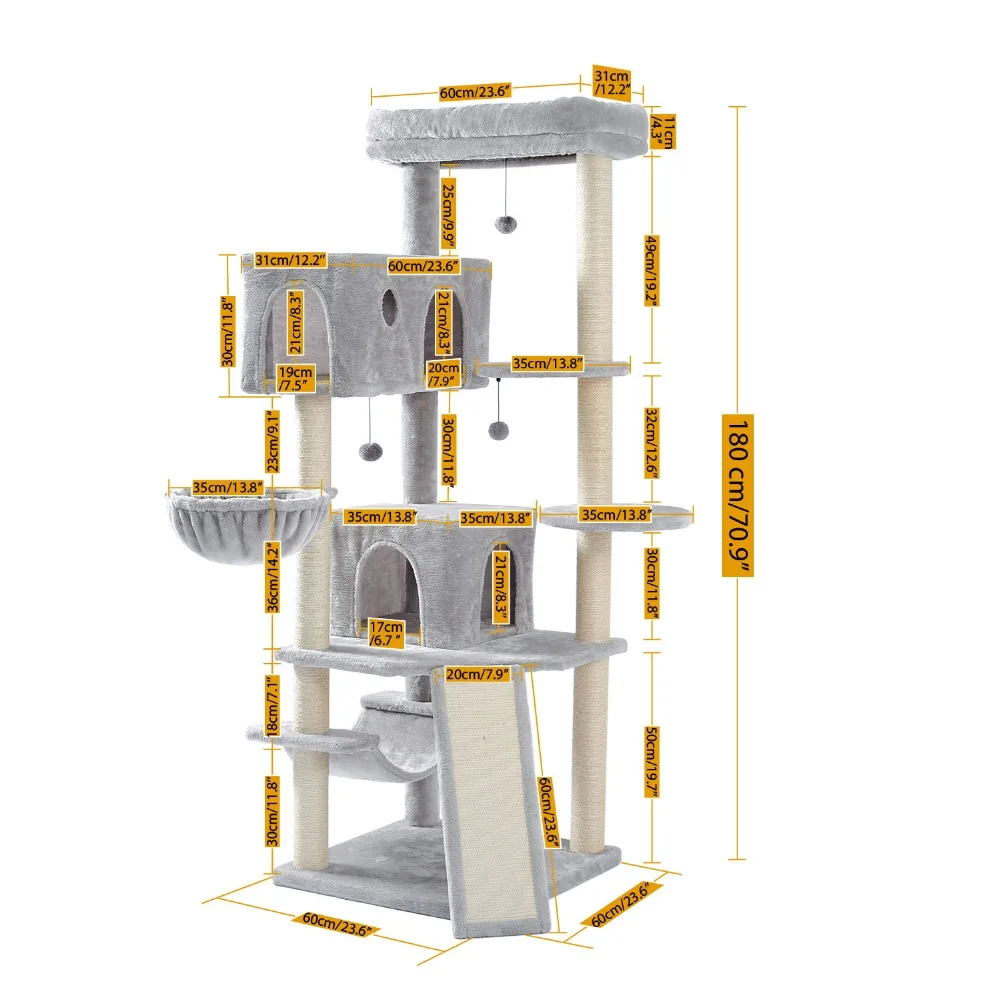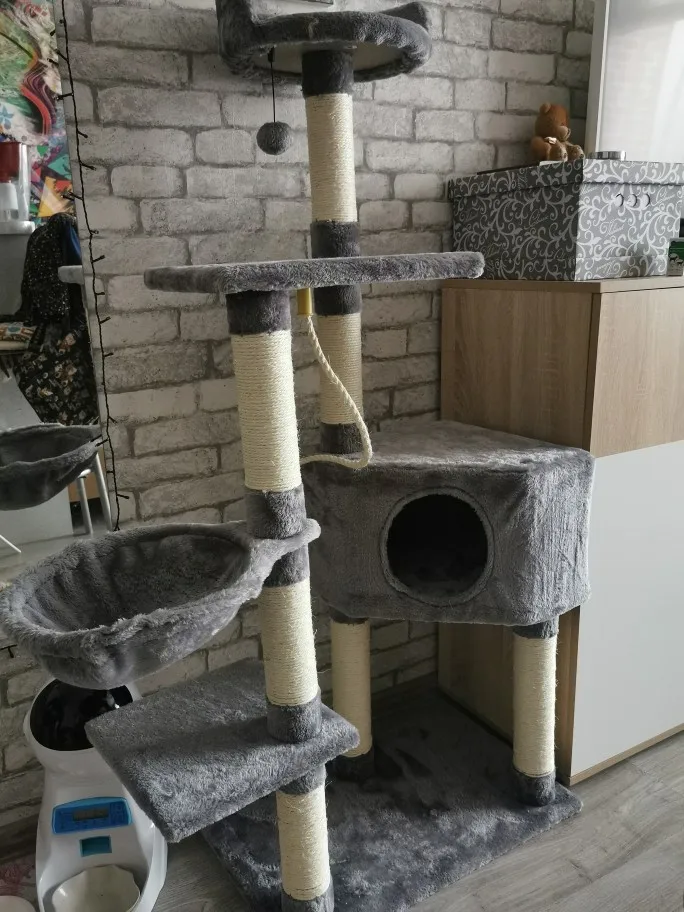 ·Многоуровневый центр активного дерева для кошек: это высокое дерево для кошек-специально разработанный центр отдыха для кошек, котят. Уютное просторное Кондо достаточно большое для 2-3 кошек, также укрытие для кошачьих отдыхов, игр и растяжек. Окунь флеш подходит для крупных кошек, глубокий гамак идеально подходит для скручивания внутри во время царапания на когтеточке из сизаля. Эта универсальная башня с кошачьим деревом сочетает в себе функциональность и стиль, что позволит кошке стать замком для ваших пушистых друзей