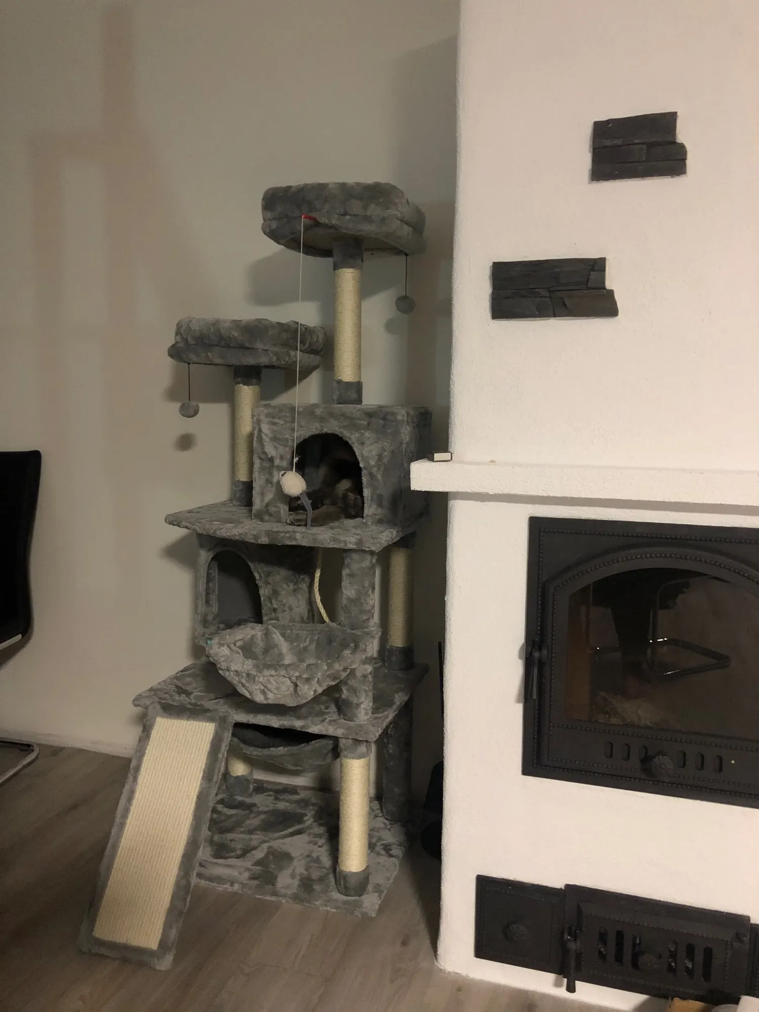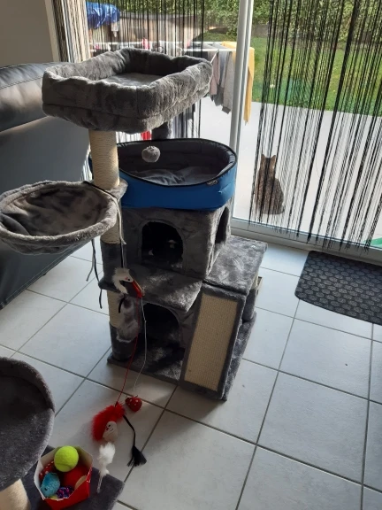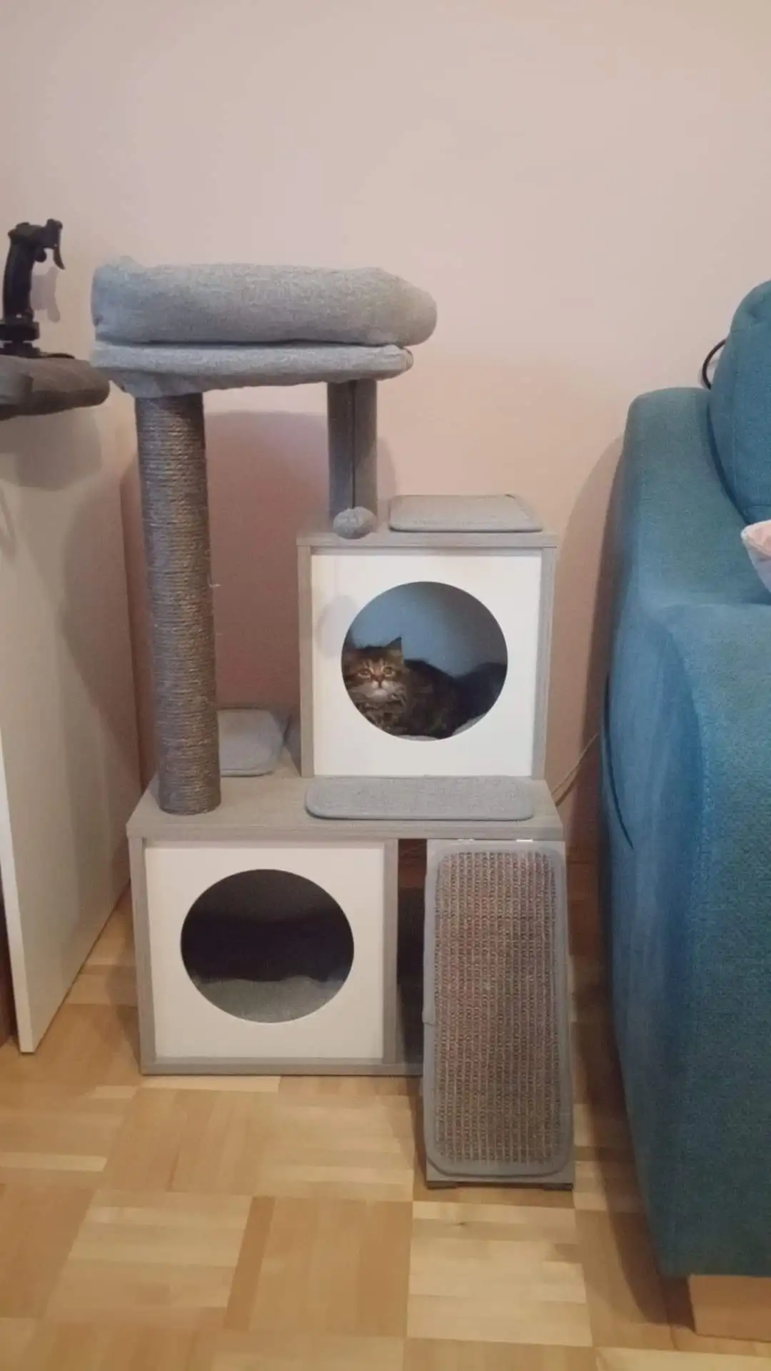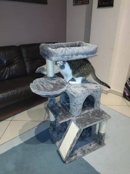 Ромпинг и скалолазание:5-уровневая конструкция, она удовлетворяет потребности кошек в подъеме и поиске разной высоты. Они могут прыгать с одного уровня на другой и лежать на самом высоком верхнем окуне, чтобы наблюдать за своим окружением и лучше выглядывать в окно.