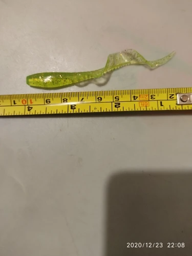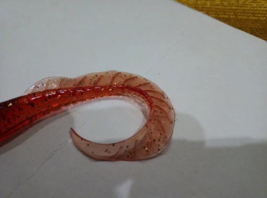 Качественный силикон, средний по мягкости, нет откровенной жижи и не дубовый. Необычный плавник. Очень хочется попробовать данную приманку в деле.