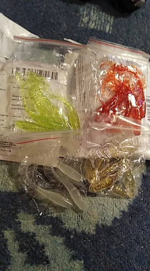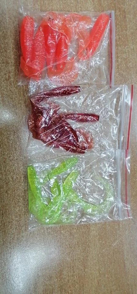 Упаковано в какой-то левый целлофановый пакетик, да и сами приманки выглядят паршивенько.
