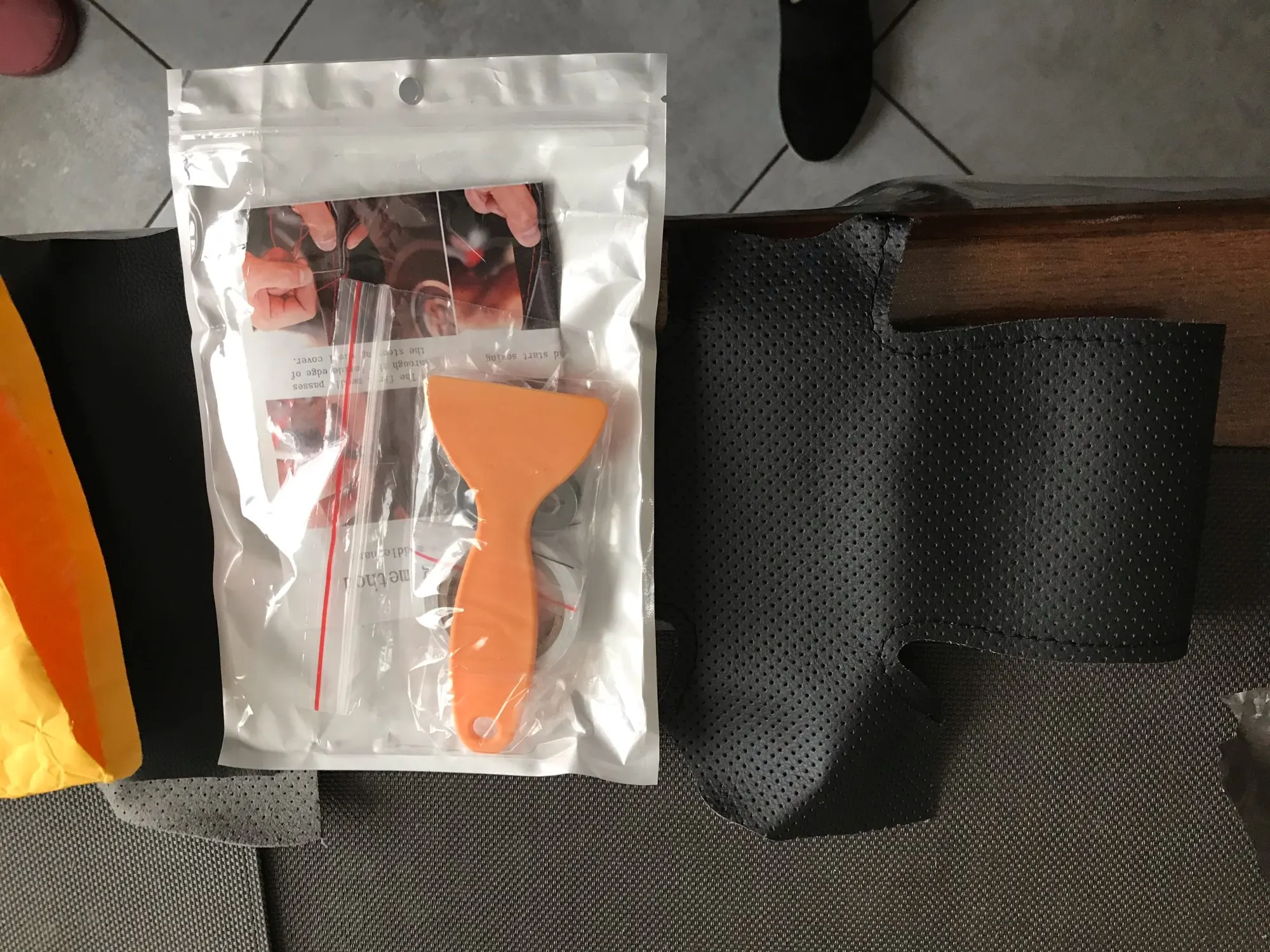 Not giving it 5 stars because it was not perfect and I had one side a bit different than the other but for this price is fair.. it's a good kit, comes with everything you need and fits well enough, that's why I give it 4 stars! but if your old steering wheel is as bad as mine was, I highly recommend you buy this!!! I removed the old one to make it fit better! took about 1 and a half months to arrive.