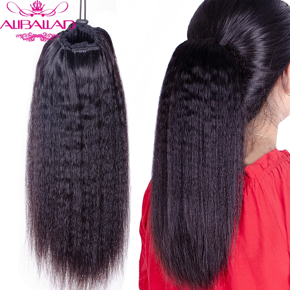 Кудрявые прямые человеческие волосы на шнурке для конского хвоста, бразильские накладные волосы на зажиме, натуральный цвет, волосы без повреждений, 4 расчески, 150 г, Aliballad
