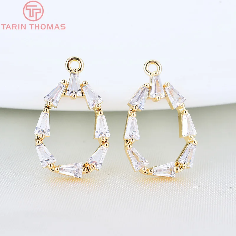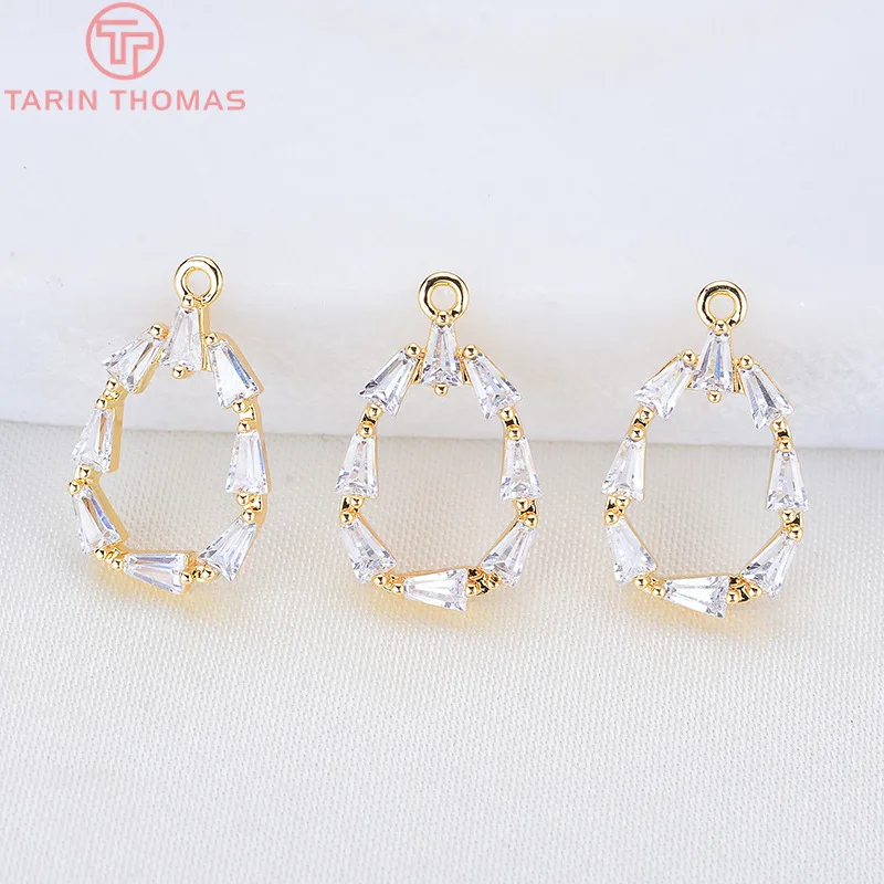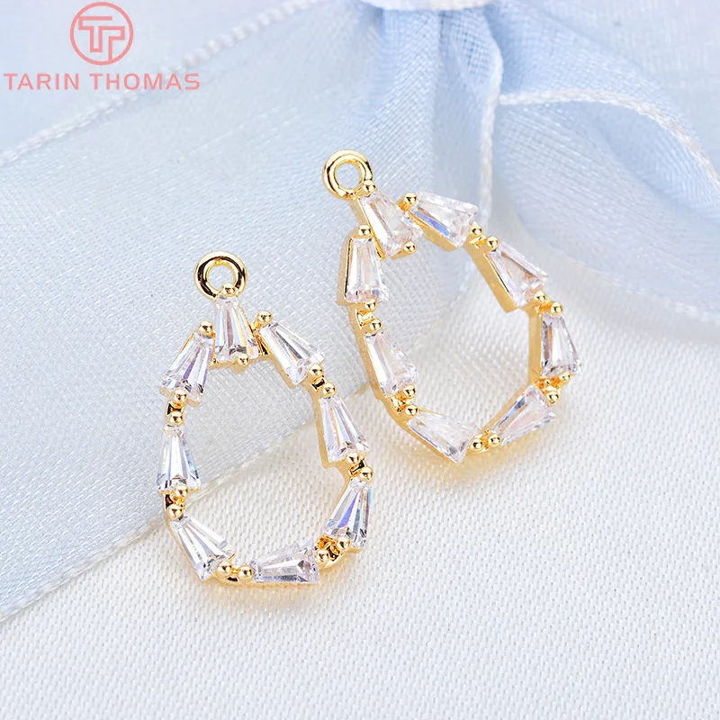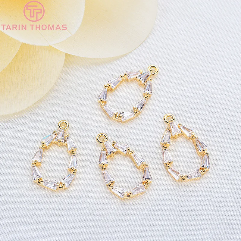 Латунные подвески с цирконом, 4 шт., 10x16 мм, 24 кар