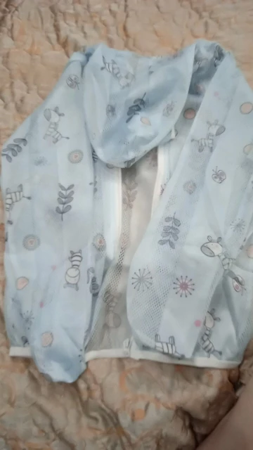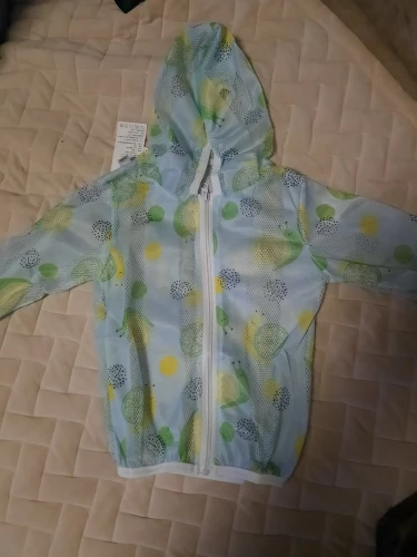 Куртка превосходная, пошита отлично! Ткань с перфорацией, лёгкая. Заказала голубую для мальчика, но, на мой взгляд, больше подойдёт девочке. Рисунок с веточками, сердечками, бабочками и зверюшками. Вещь очень милая и тактильно приятная. Жаль, что с размером не угадала и ребенку пока значительно велика. Продавец долго не отправлял, уже невольно думалось, что доставку отменит. Но прибыла раньше других покупок, даже совершенных ранее этой. Трек-номер отслеживался, была проблема с таможней (не хватало данных), после внесения необходимой информации решилась сразу. Честно говоря, эта посылка заставила меня понервничать, но товар превосходный! Продавец зарекомендовал себя как добросовестный.