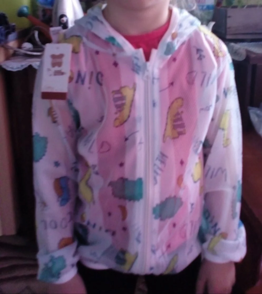 разочарована покупкой( думала, курточка хоть с подкладом - ничего нет, только сетка. на 5т - на этикетке рост 120, размеру соответствует. на девочке 6 лет, рост 118 сидит с запасом. почему-то ярлычок расположен на плече и торчит на лицевую сторону! химозный запах! края плохо обработаны! даже 300 руб и те на это жалко!