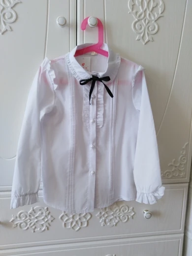 Блузки для девочек, хлопковые, с длинным рукавом, в стиле преппи, с оборками, повседневные, для весны и осени