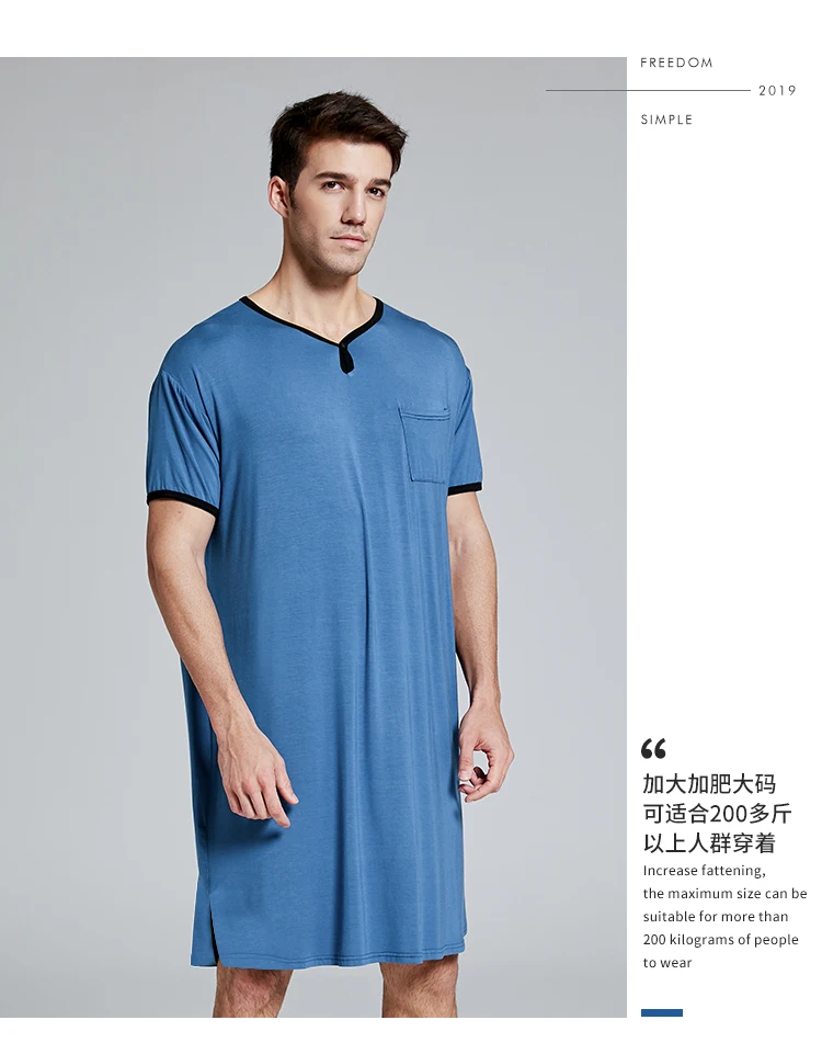 Мужская очень большая и высокая ночная рубашка из модала с короткими рукавами, ночная рубашка, пижама, одежда для сна, домашняя одежда, одежда для отдыха, рубашка для сна на Хенли, топы, Халат
