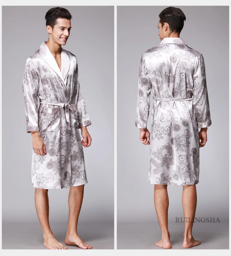 Халат-кимоно мужской, Шелковый, с длинным рукавом до колена, атласный, лето-осень
