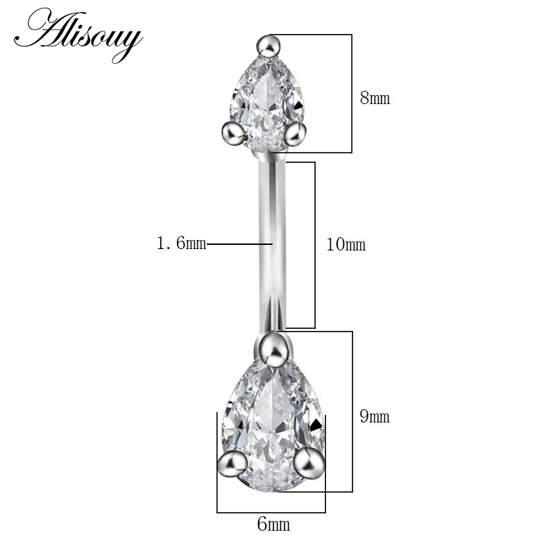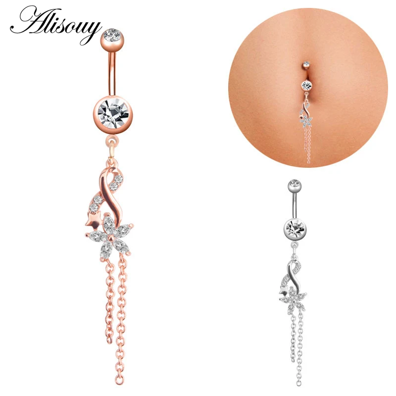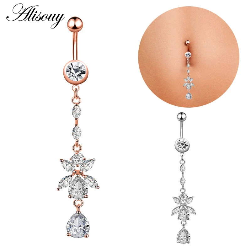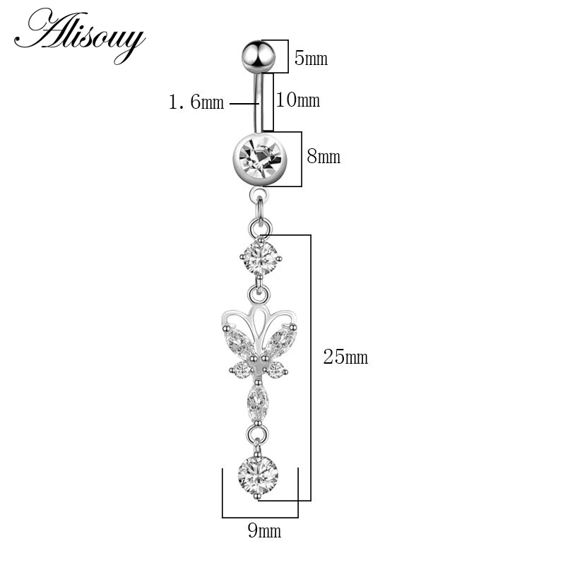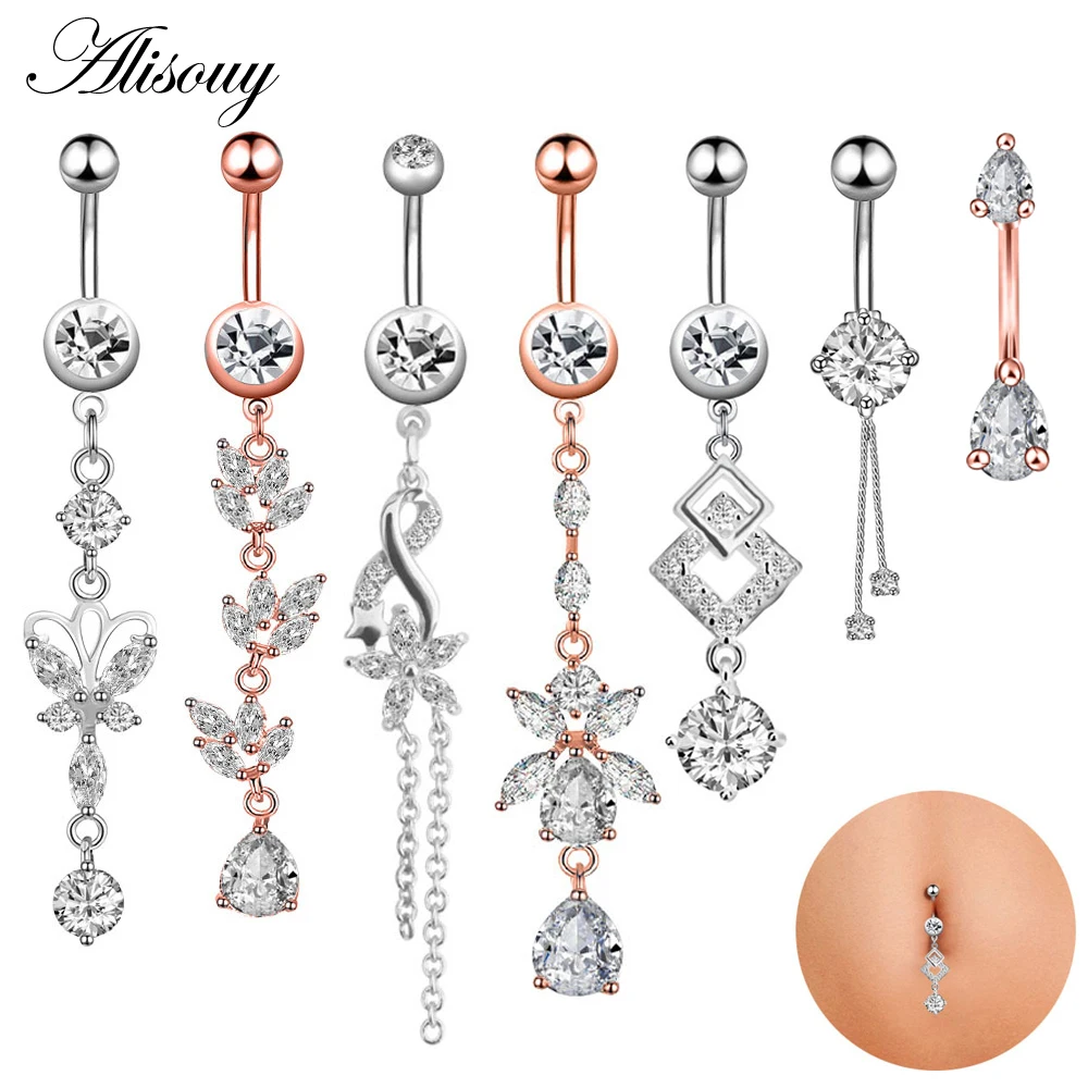 Alisouy 1 шт. пикантные Висячие пупка Кольца пирсинг живота с украшением в виде кристаллов хирургические Сталь женщина, бижутерия для пирсинга, штанга гантельного типа