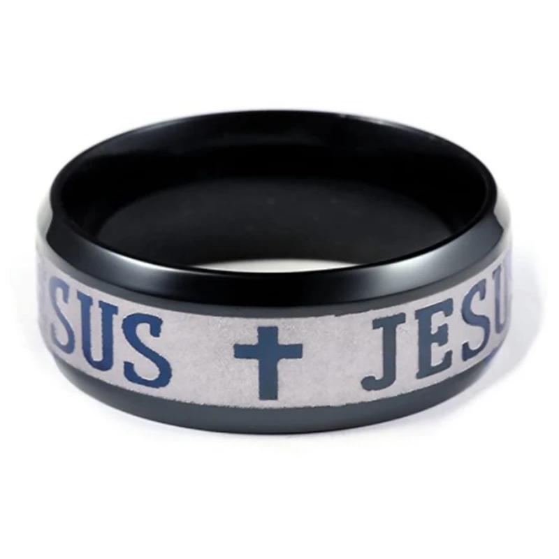 Кольцо из нержавеющей стали, черного цвета, кольцо, Крест Иисуса, буква Библия молитва, для мужчин, амулет 8 мм, ювелирные изделия