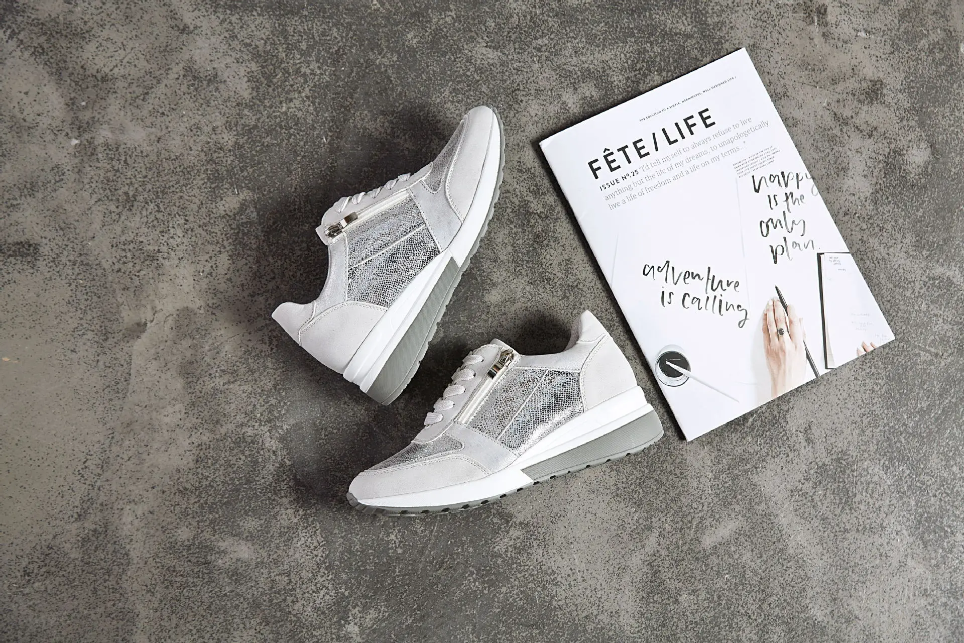 FujinВесенняя спортивная обувь; Прямая поставка; Женская Повседневная дышащая прогулочная обувь; Обувь в европейском и американском стиле; Обувь на танкетке из искусственной кожи