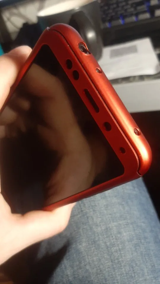 красный чехол поломанный, стекло треснутое, с продавцом не общалась, товаром не довольна