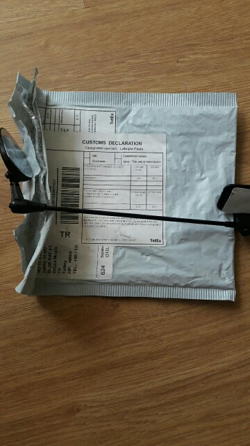 Заказал разной мелочи у разных продавцов примерно в одно и то же время, в итоге мои посылки объединили в одну, что удобно, но не быстро. Само зеркальце выглядит даже лучше,чем я ожидал: "палка-кронштейн" металлическая, но не тяжёлая, шарнирное соединение лопуха с зеркалом имеет регулировочный болт (можно затянуть потуже), в комплекте есть кусок липучки на двустороннем скотче, которую нужно приклеить к шлему, а уже на эту липучку цеплять конструкцию с зеркалом (я всё ломал голову, как зеркало отрывать от шлема - нормально, пока липучки не разлохматятся, должно хорошо ходить)... На зеркале есть защитная плёнка, и да - оно изрядно искажает, но... Блин! Берёшь в руки, и суммарно получаешь удовольствие от качества сборки! Давно забытые ощущения чего-то целостного, и нормально сделанного!! )))) С продавцом не общался.