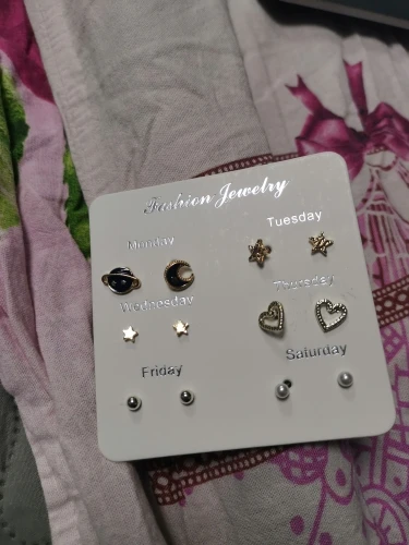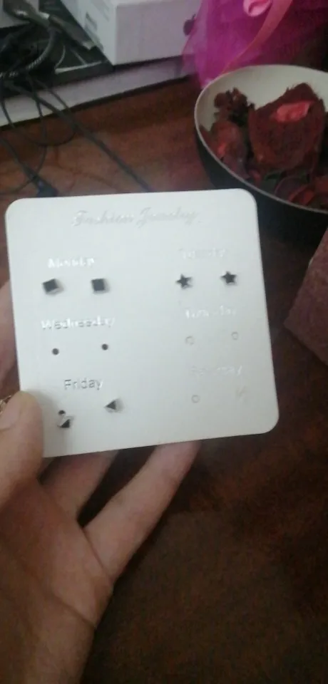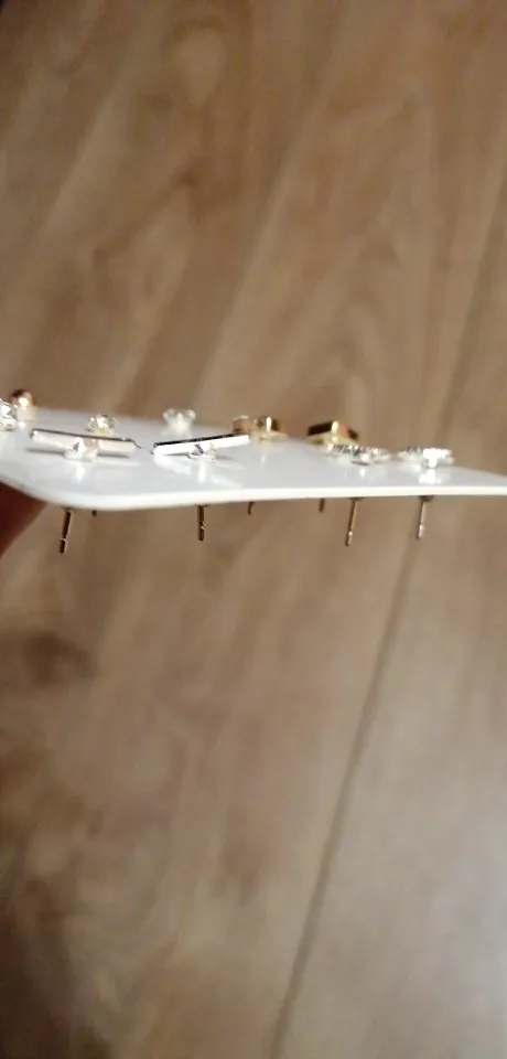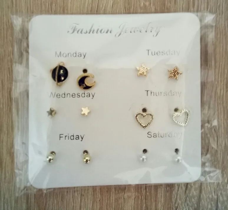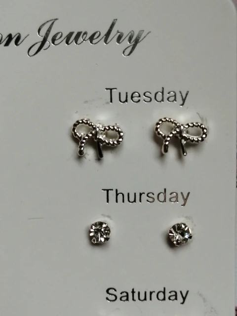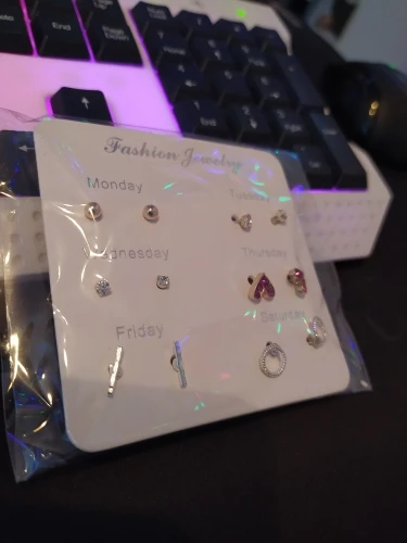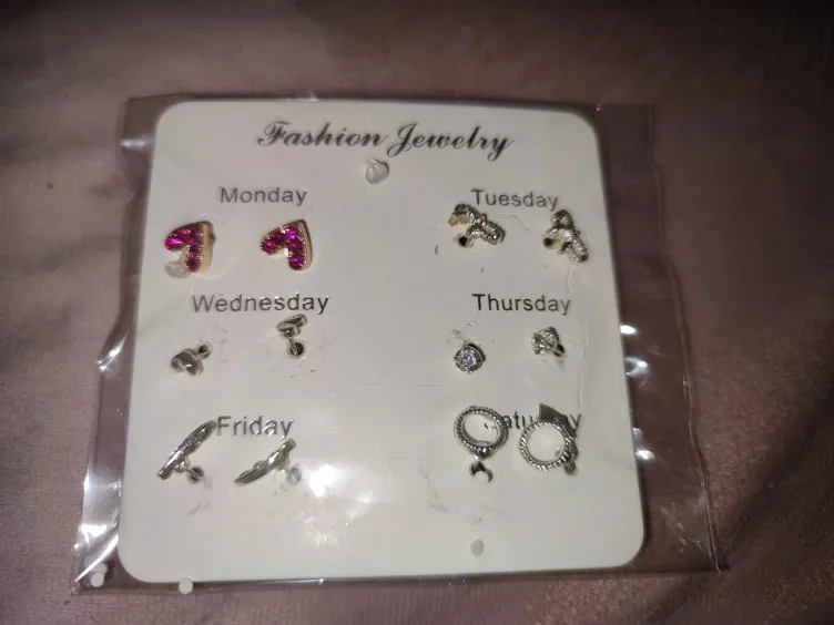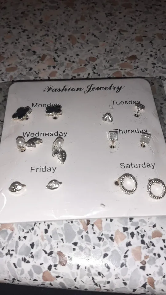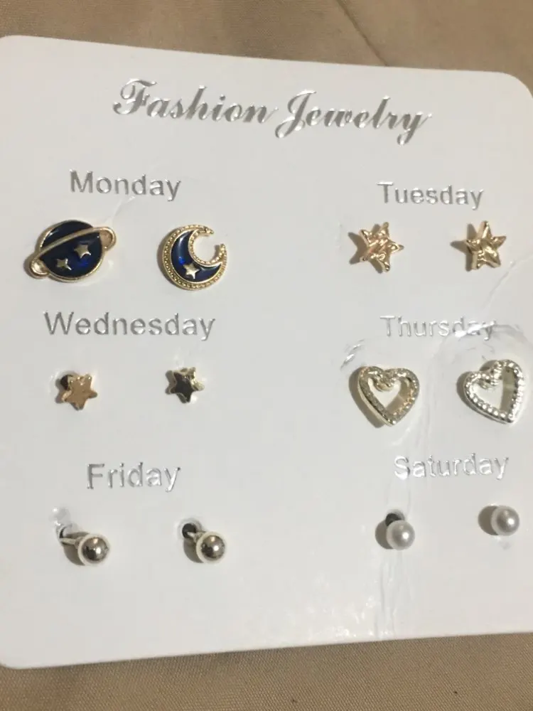Заказ был сделан с огромной скидкой по купону продавца и отправлен через неделю. Набор серёжек пришёл почему-то золотого цвета, а не серебряного. Видимо, со временем металл желтеет и мой комплект какое-то время лежал на складе. В остальном серьги такие же, как и в описании - маленькие и аккуратные, с хорошей детализацией. Мне понравилось, что все штифты были прямые, ничего не пришлось распрямлять. В комплекте пришли 4 дополнительных заглушки.