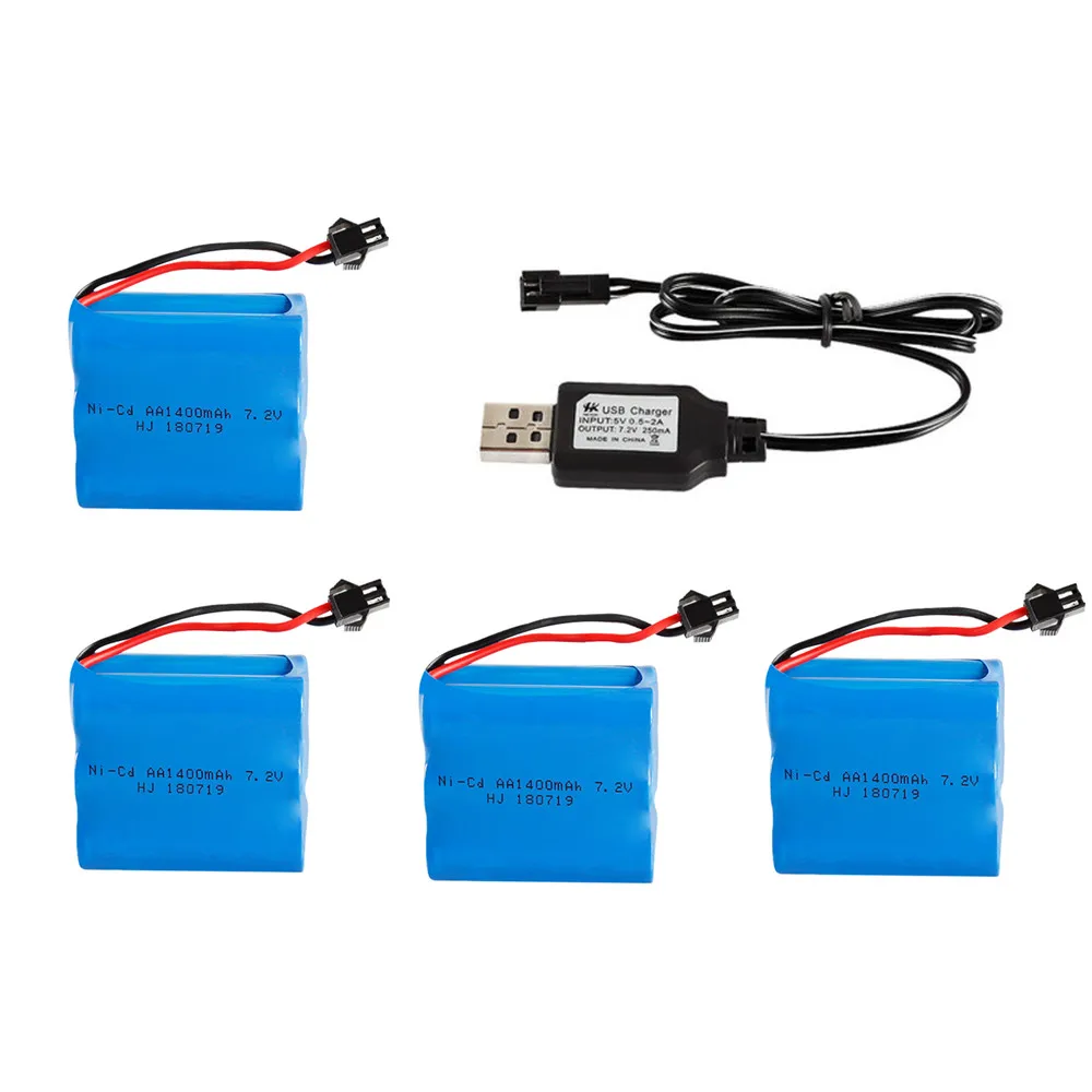 Никель-кадмиевый перезаряжаемый аккумулятор 7,2 в, 1400 мАч, 234 шт. + кабель 5 в 1, charegr для радиоуправляемых машинок, лодок, пистолетов, электрических игрушек, 7,2 в, 1400 мАч, игрушечная батарея